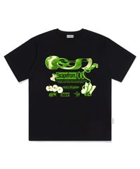 애플 ESCF 로고 콜라주 프린트 오버핏 반팔티 블랙