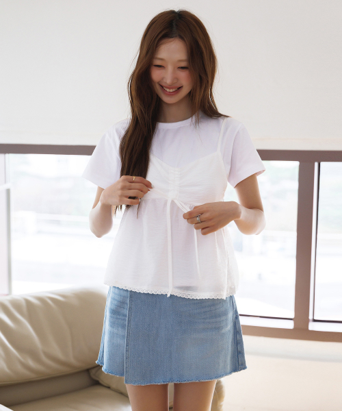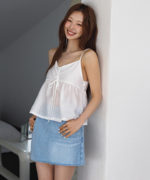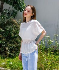 린넨 밑단 셔링 스트랩 블라우스
