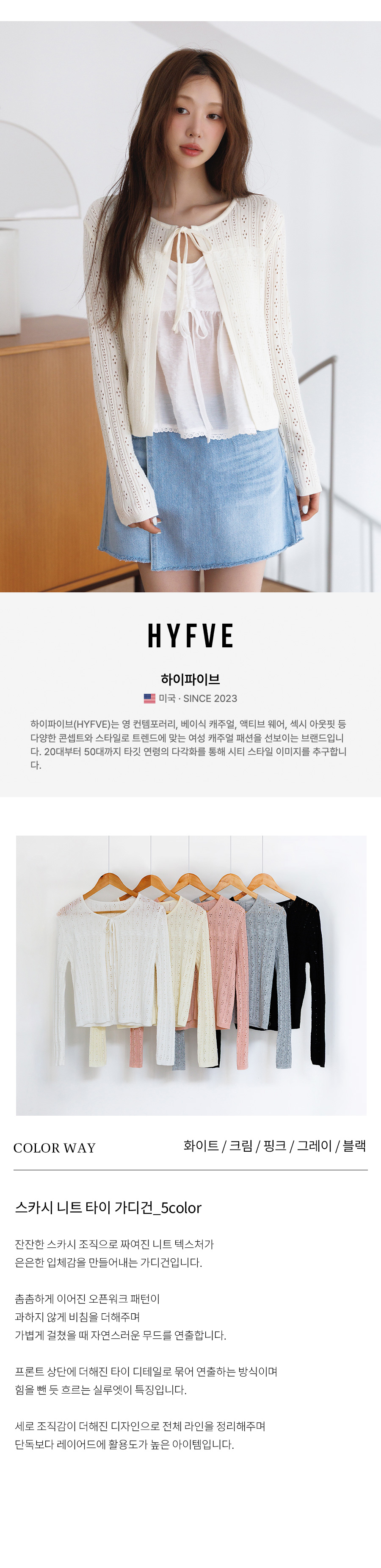 하이파이브(HYFVE)는 영 컨템포러리, 베이식 캐주얼, 액티브 웨어, 섹시 아웃핏 등 다양한 콘셉트와 스타일로 트렌드에 맞는 여성 캐주얼 패션을 선보이는 브랜드입니다. 20대부터 50대까지 타깃 연령의 다각화를 통해 시티 스타일 이미지를 추구합니다.