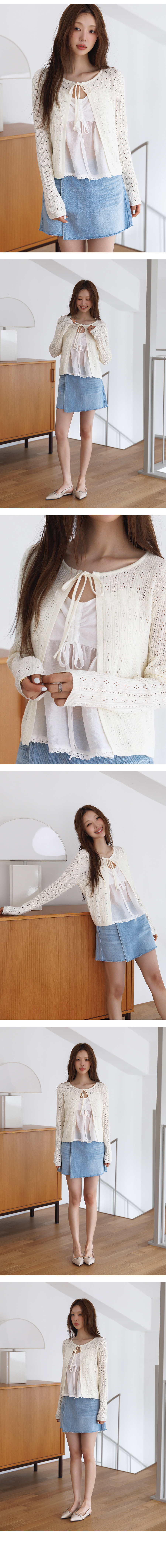 도트 시어 리본 뷔스티에