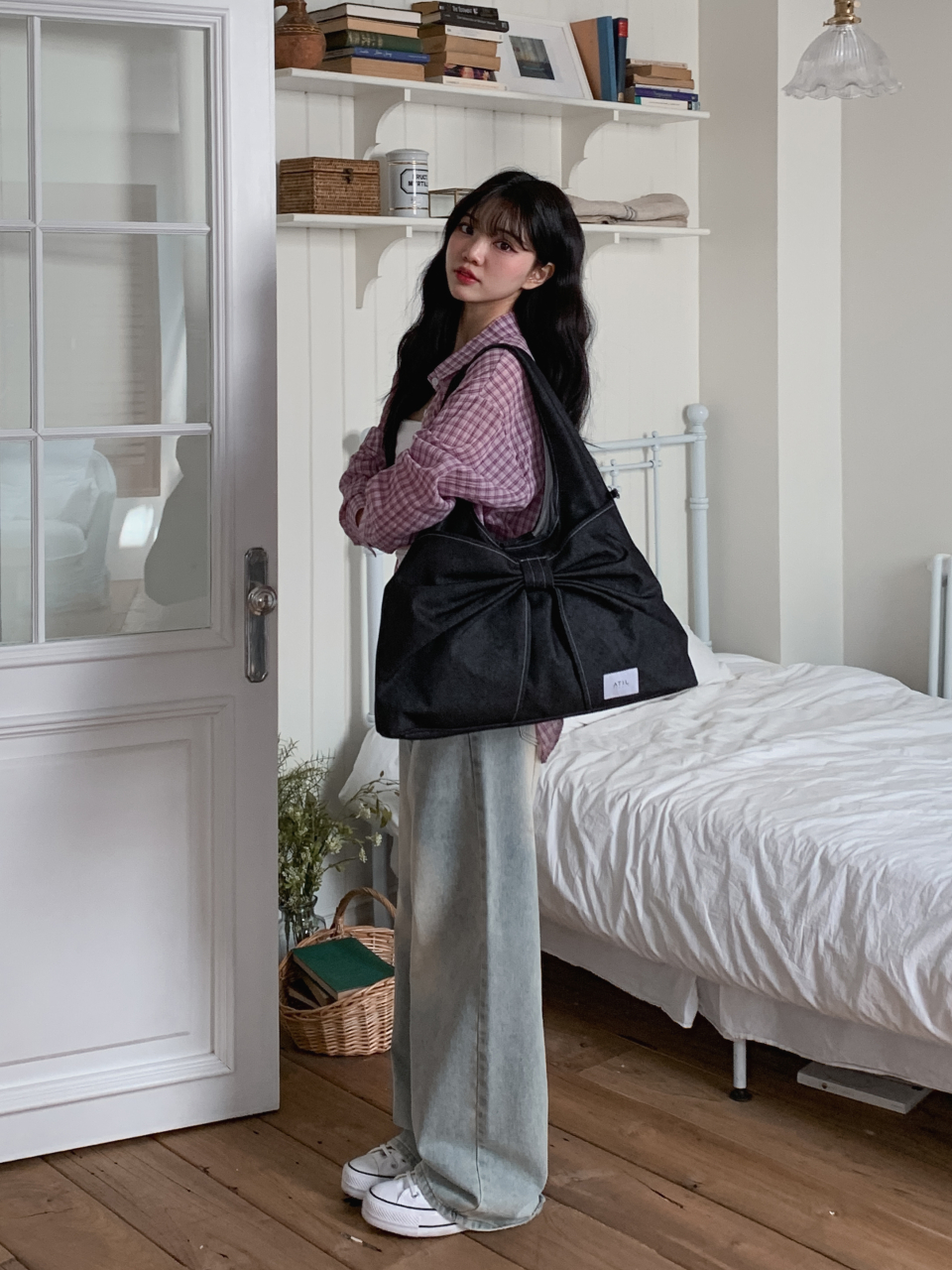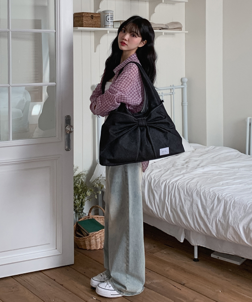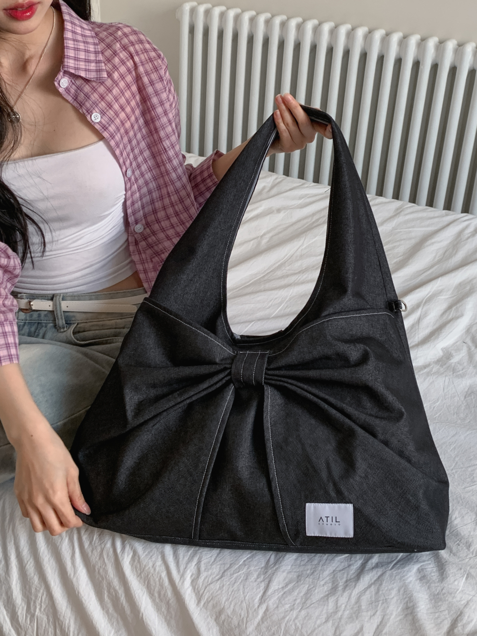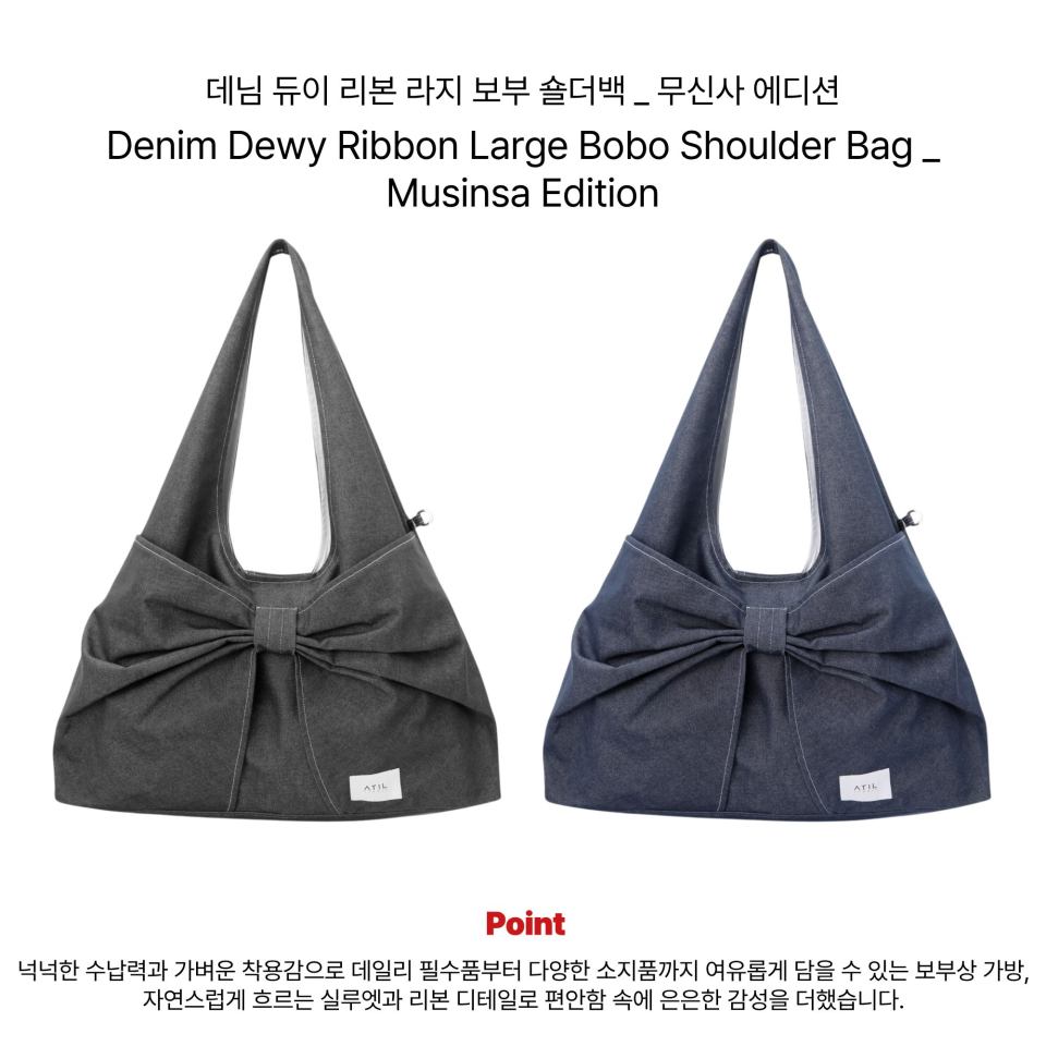 데님 듀이 리본 라지 보부 숄더백_무신사 에디션 [블랙]
