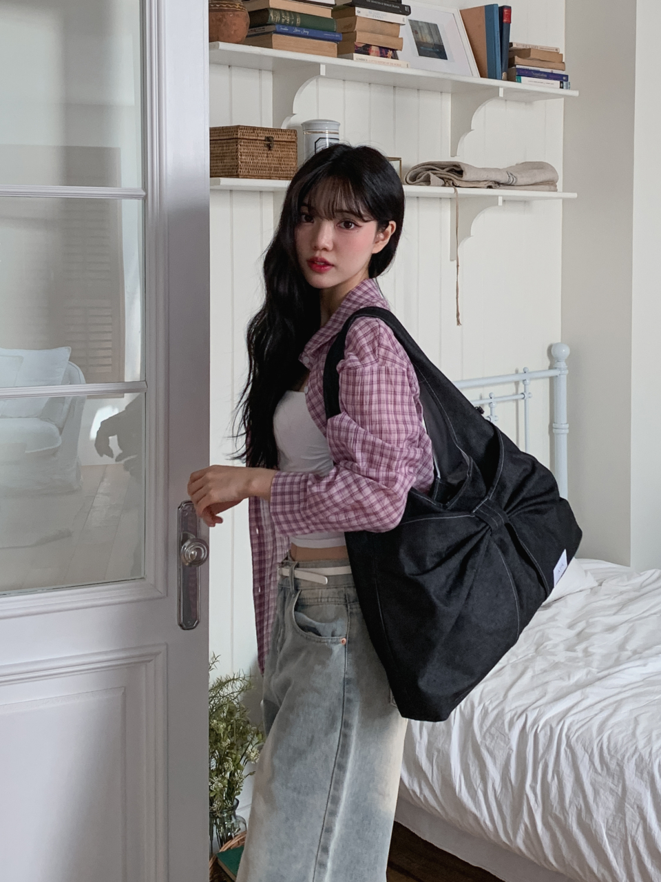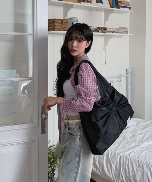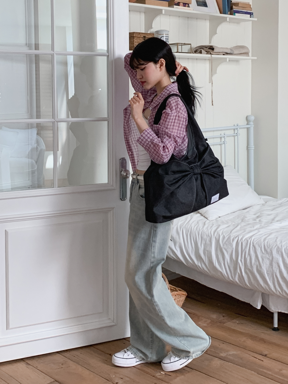 데님 듀이 리본 라지 보부 숄더백_무신사 에디션 [블랙]