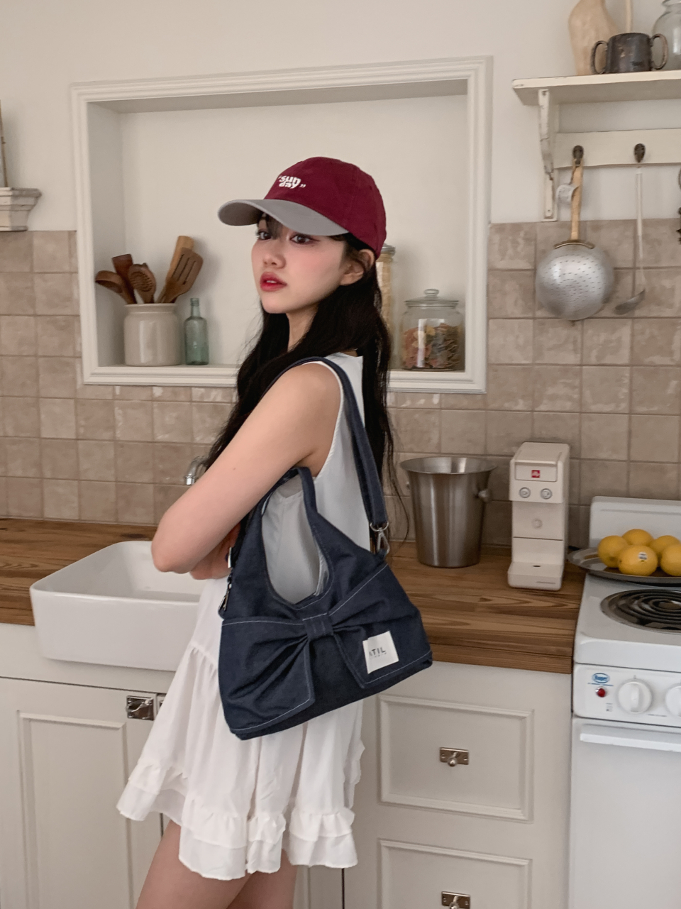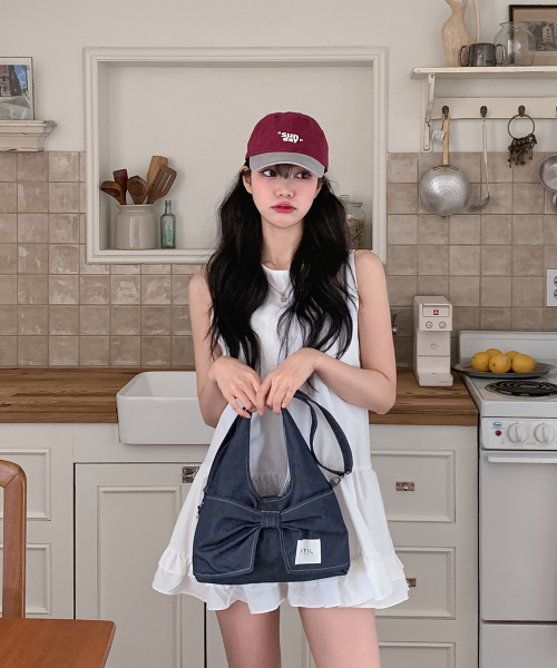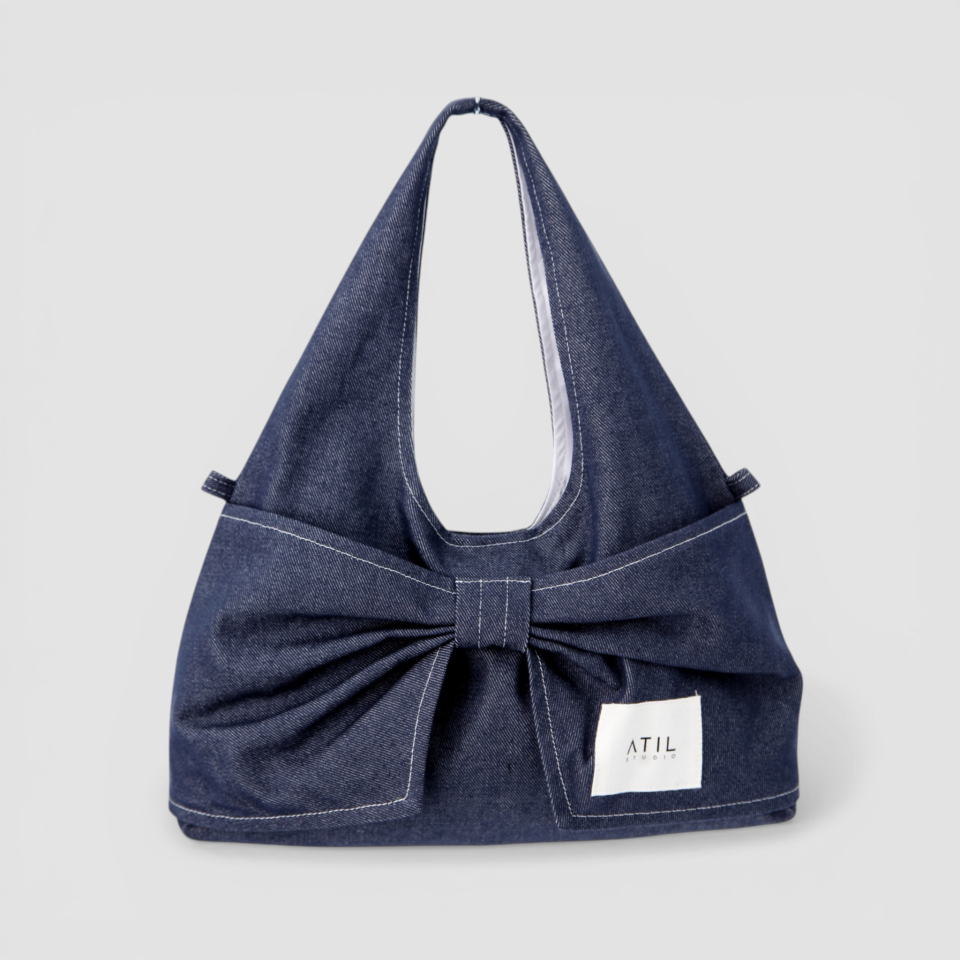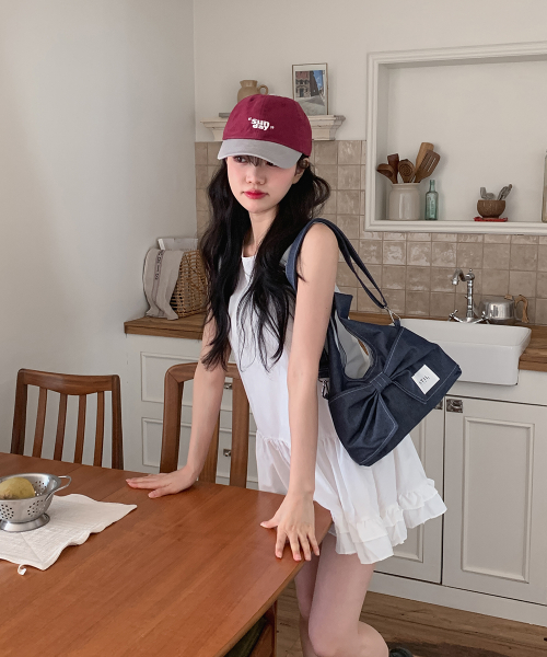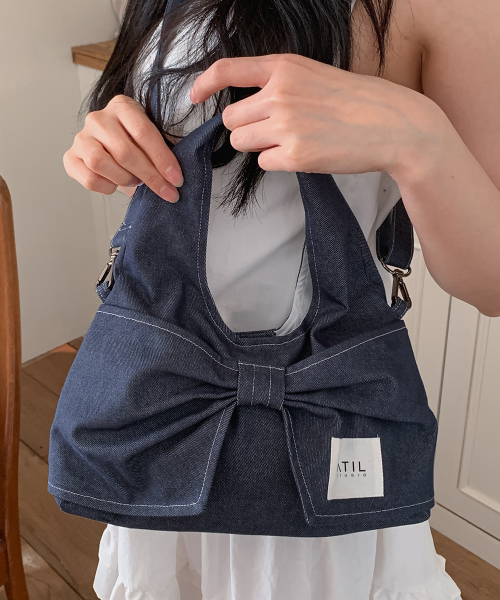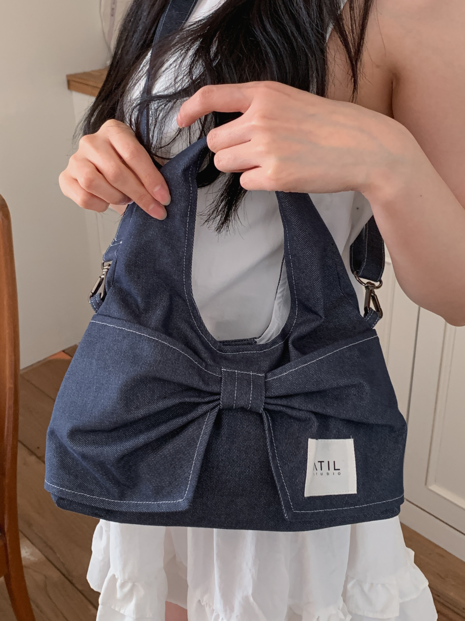 데님 듀이 미니 리본 도트 숄더 & 크로스백 _ 무신사 에디션 [블루]