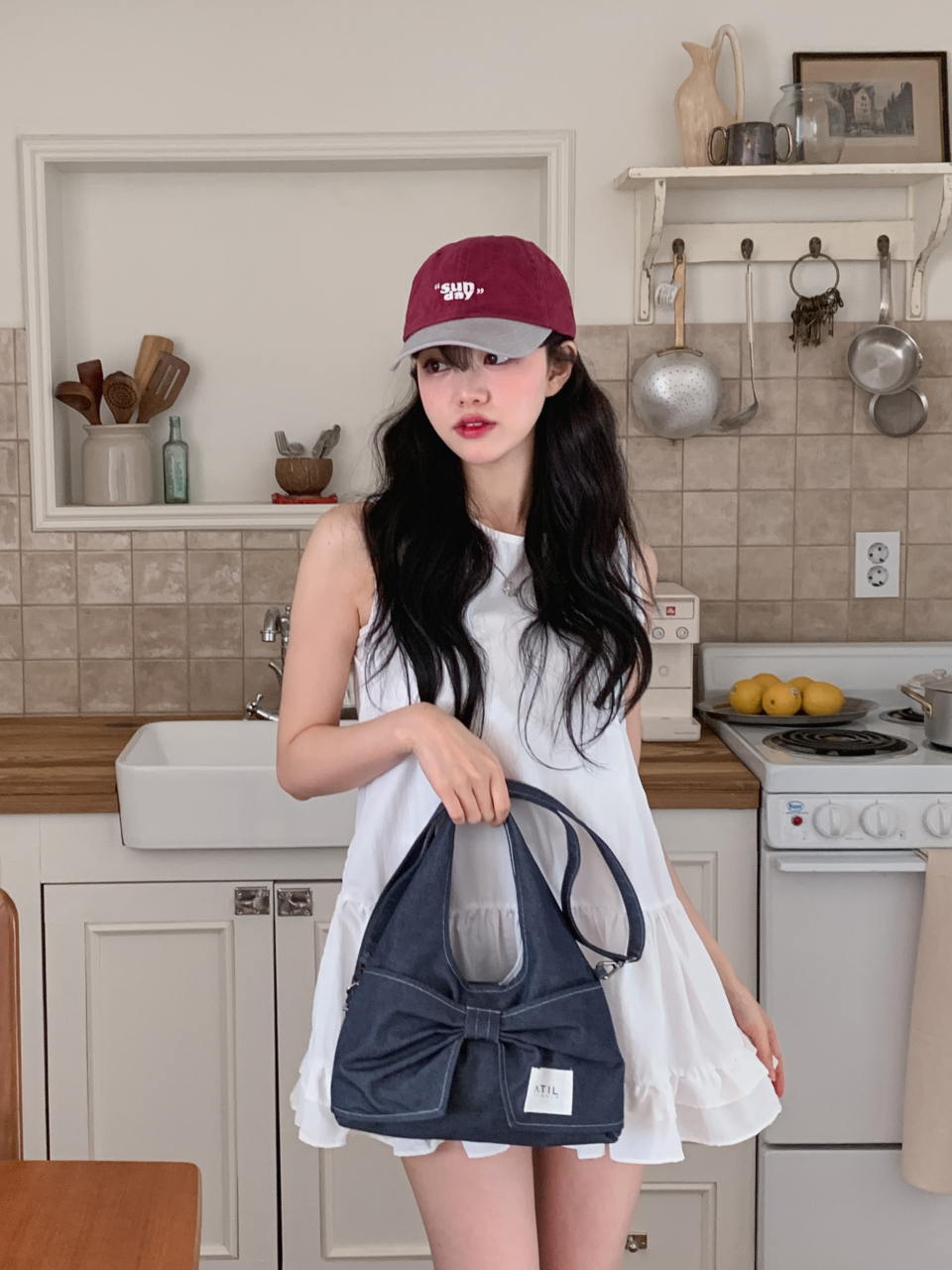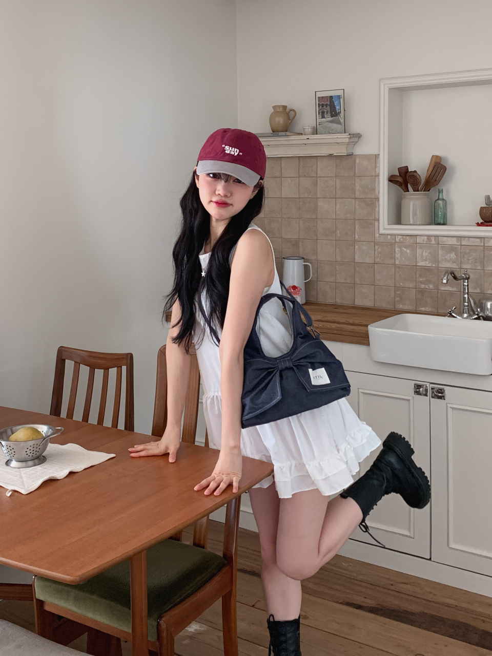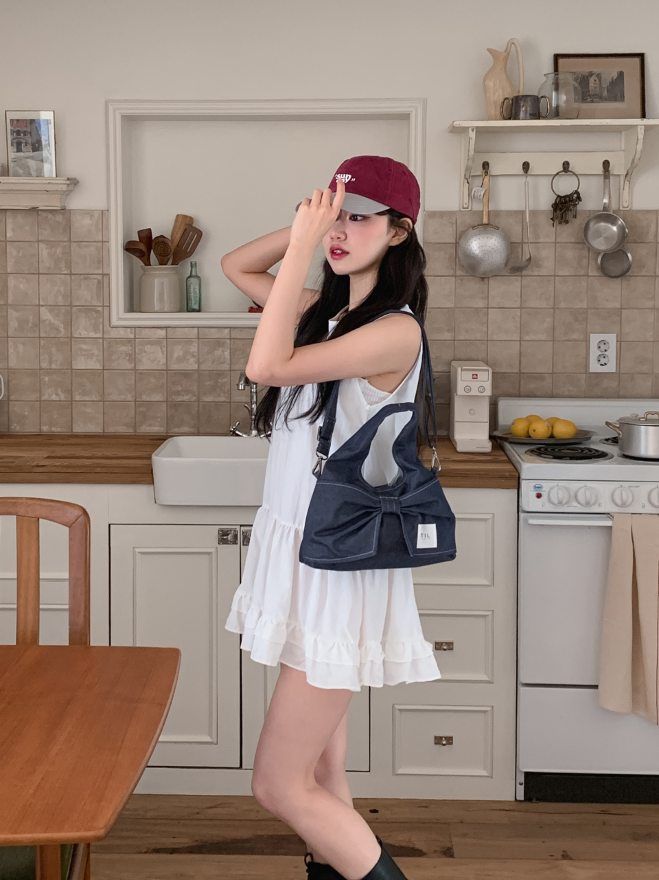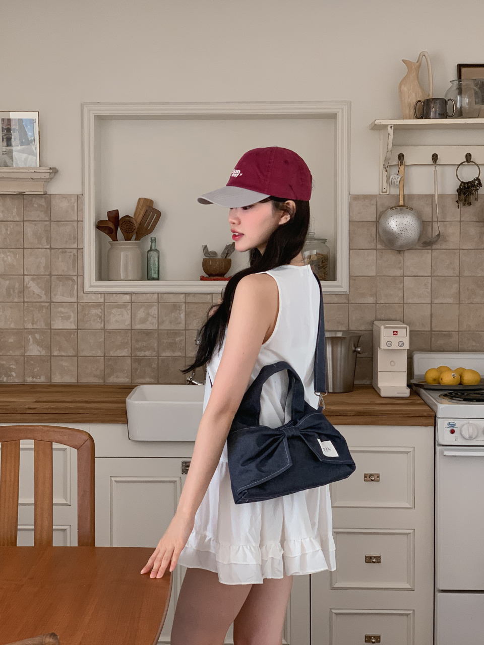 데님 듀이 미니 리본 도트 숄더 & 크로스백 _ 무신사 에디션 [블루]