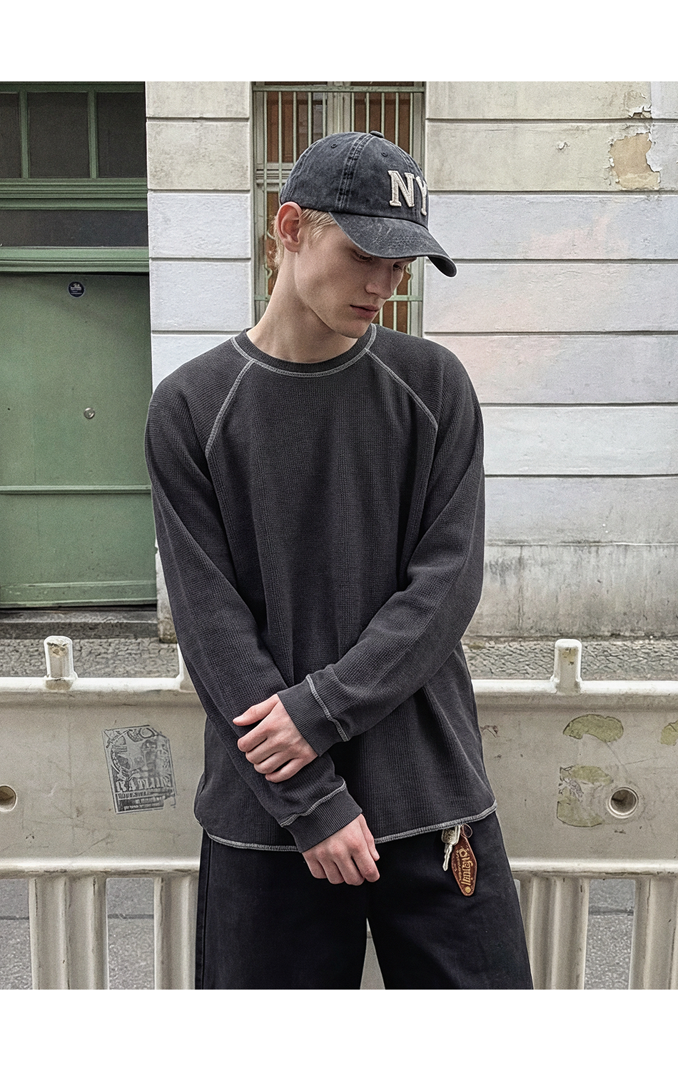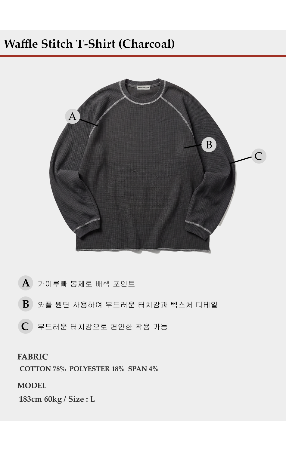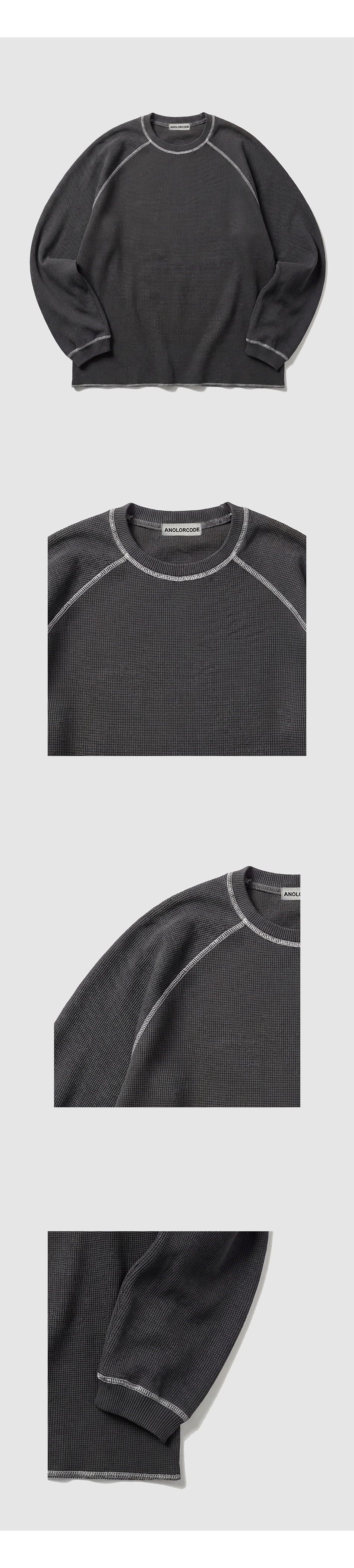와플 스티치 티셔츠 (차콜)