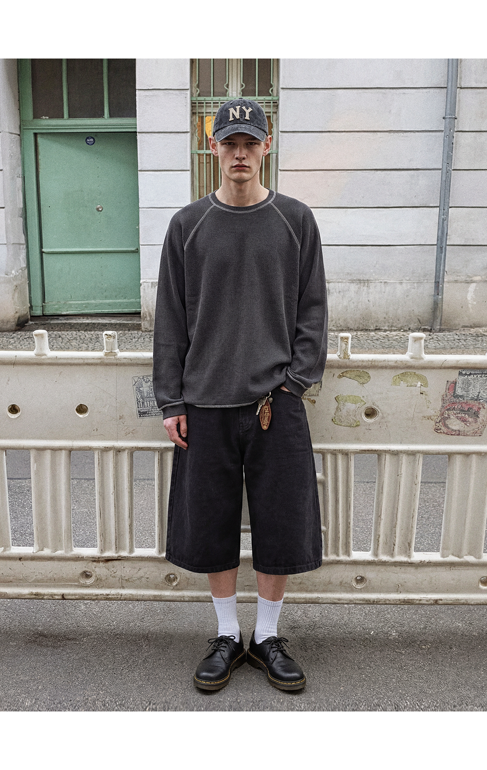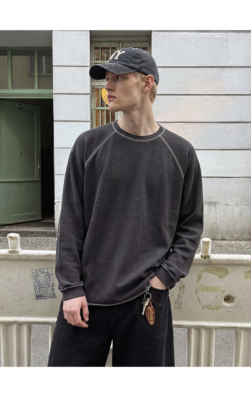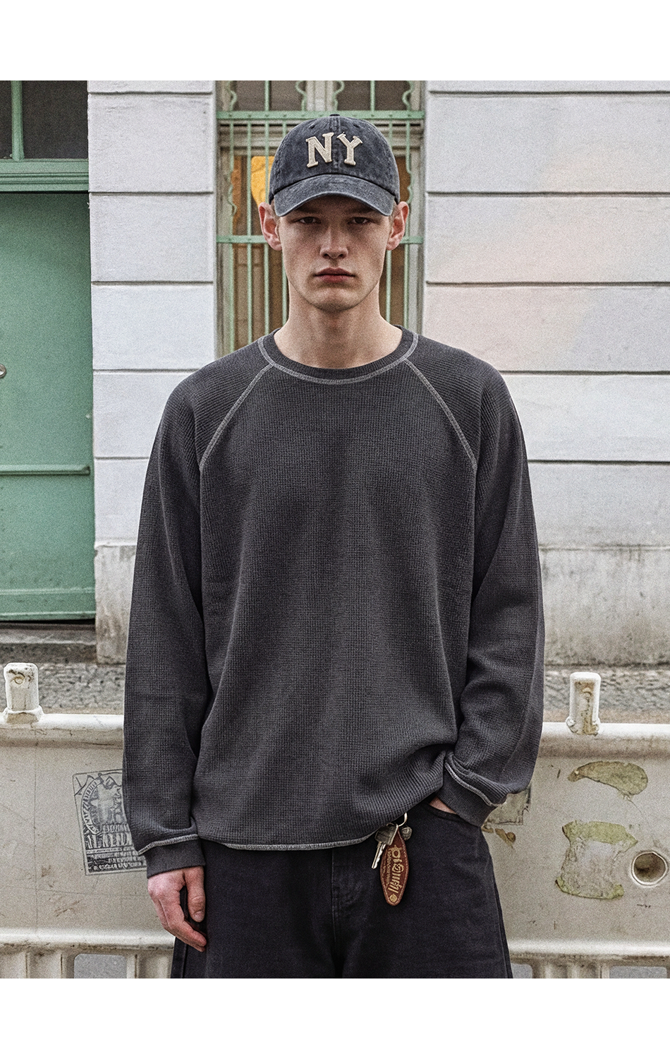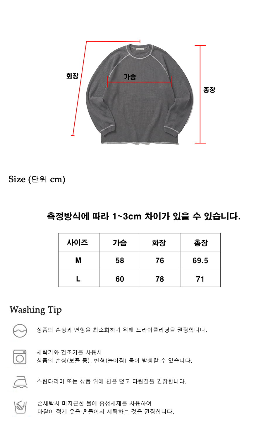 와플 스티치 티셔츠 (차콜)