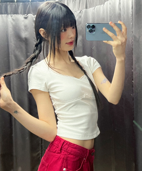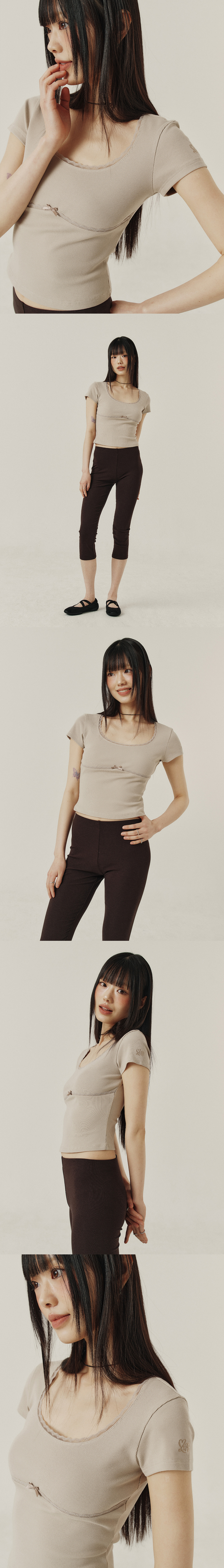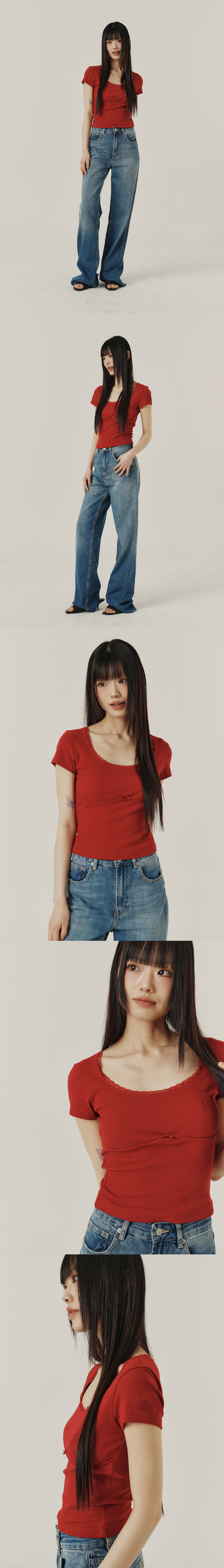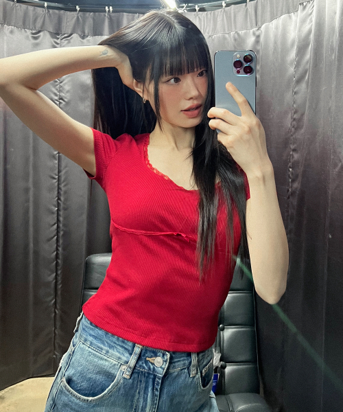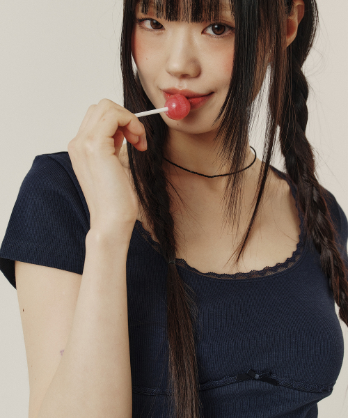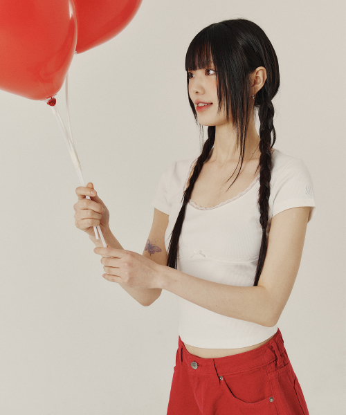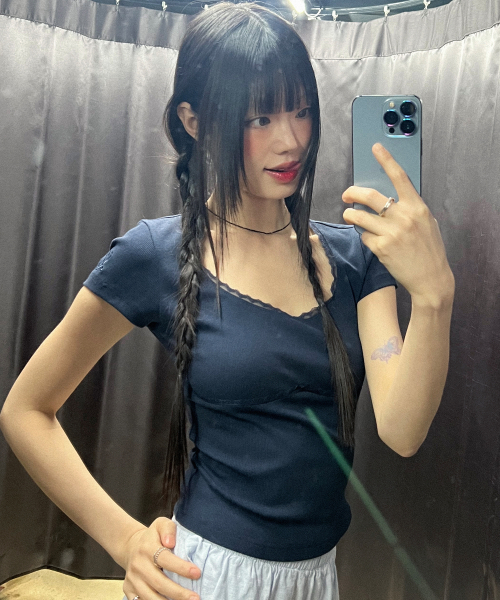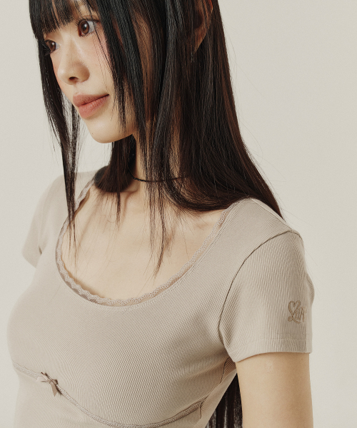 LACE U-NECK SLIM T-SHIRT_4color