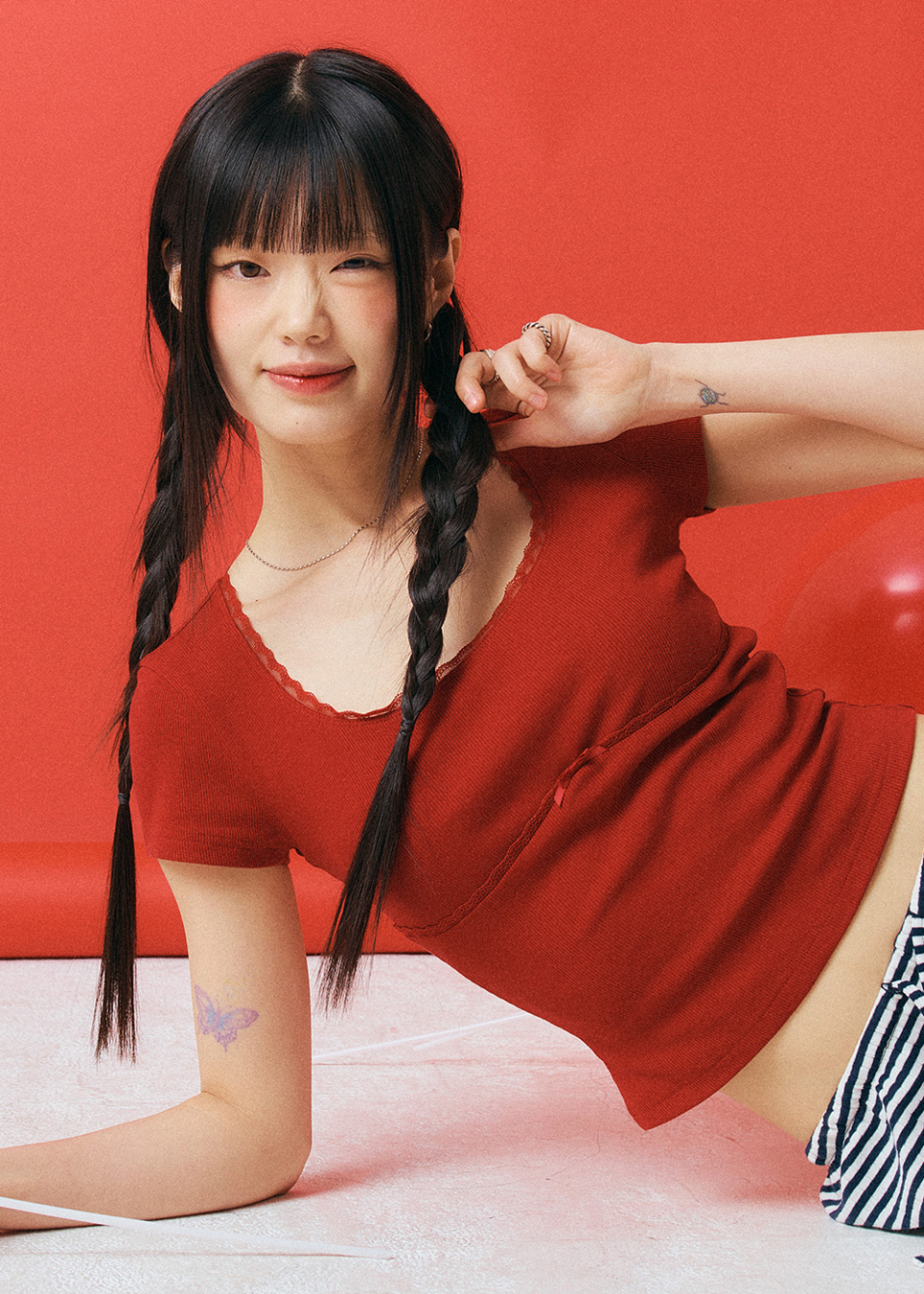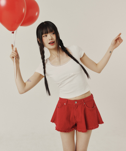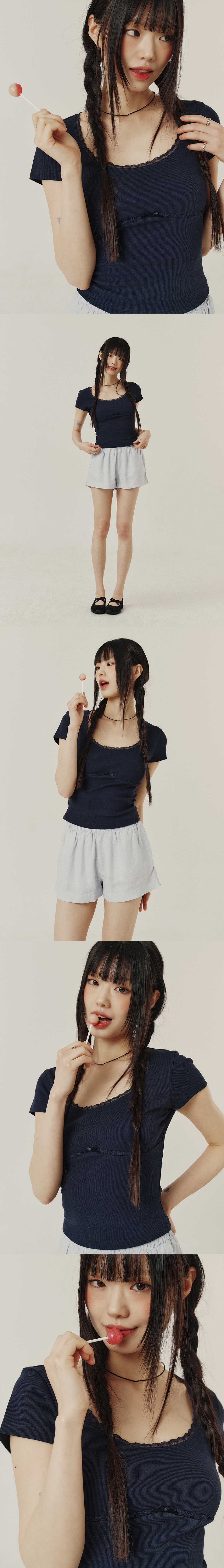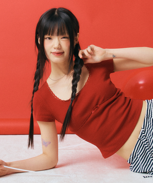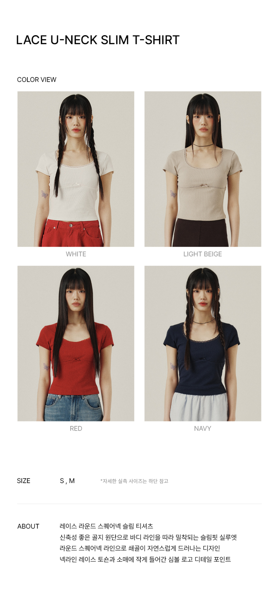 LACE U-NECK SLIM T-SHIRT_4color