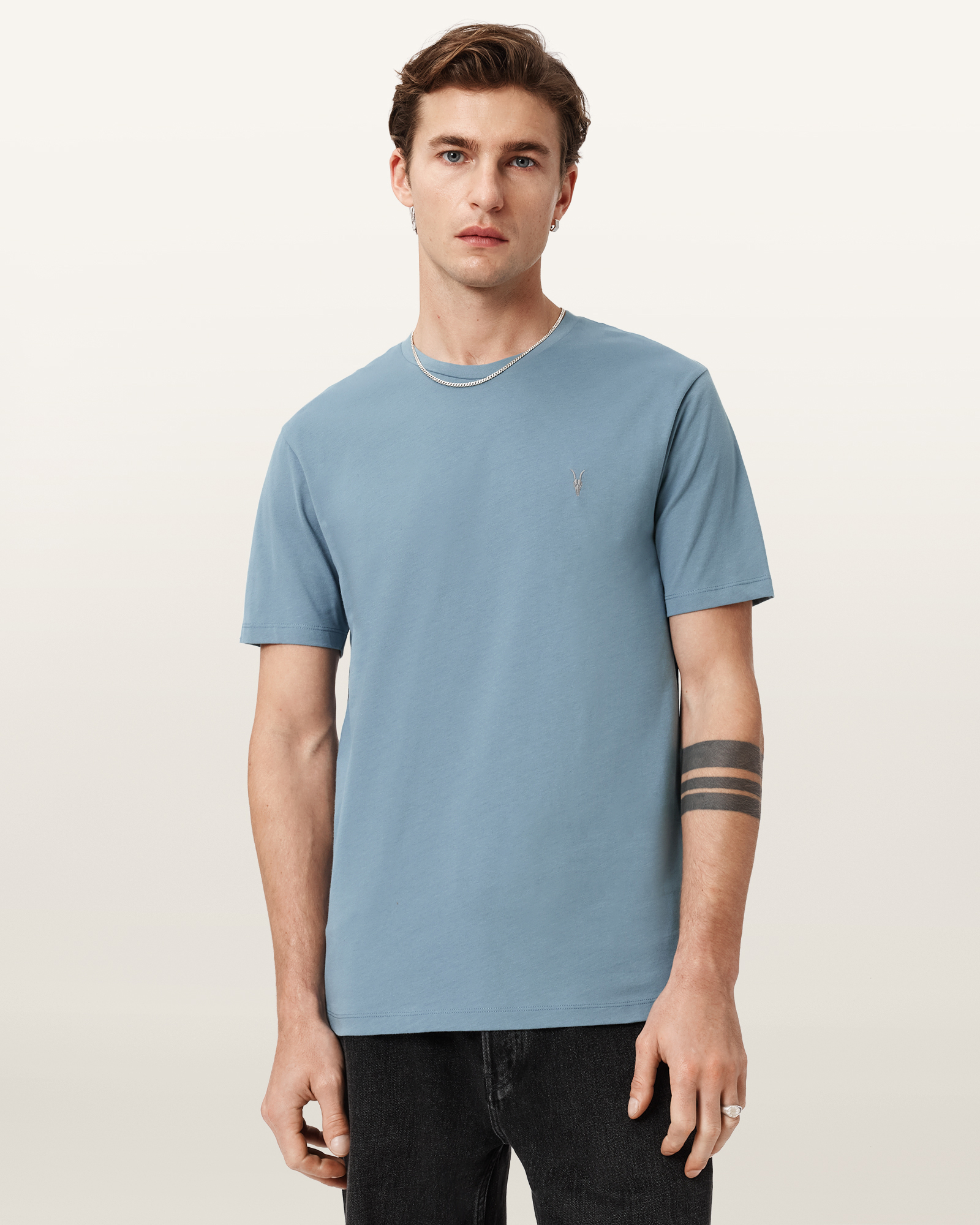 브레이스 반팔 티셔츠는 카본 브러시 면 원단으로 제작되어 부드러우면서도 탄탄한 착용감을 선사합니다. 가슴 부분에는 올세인츠의 시그니처 램스컬 자수가 더해져 브랜드의 독창적인 감성을 담아내며, 스타일에 새로운 분위기를 더해줍니다.