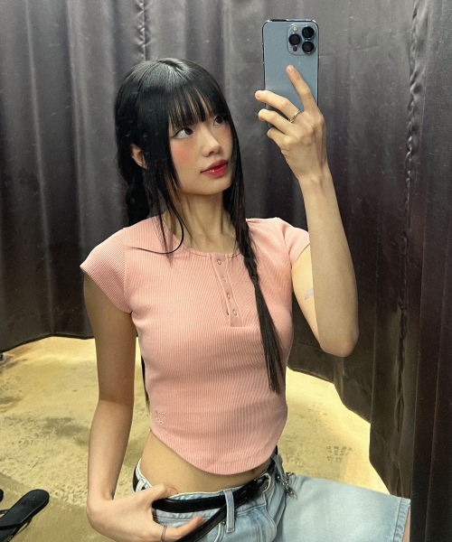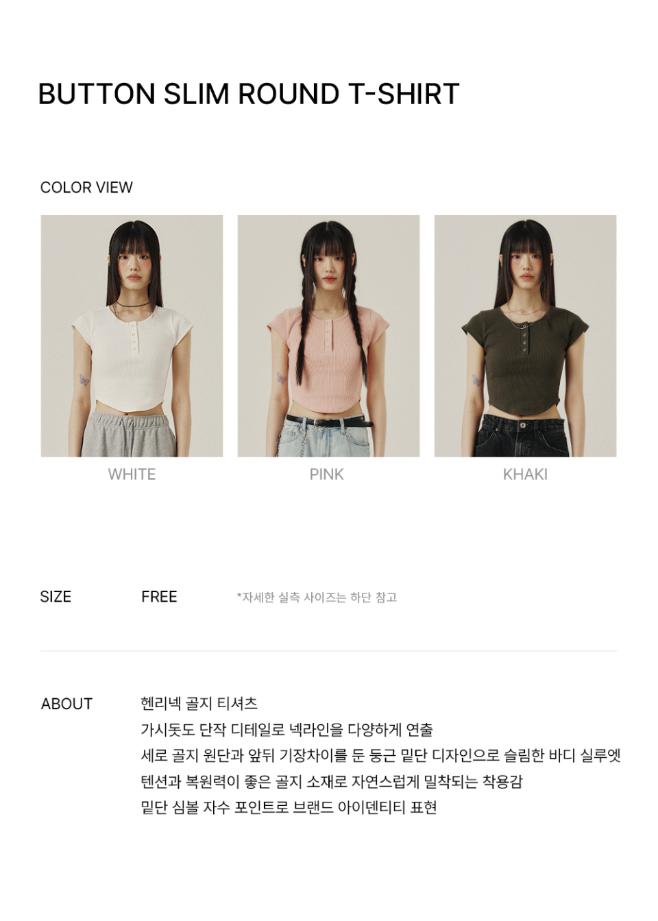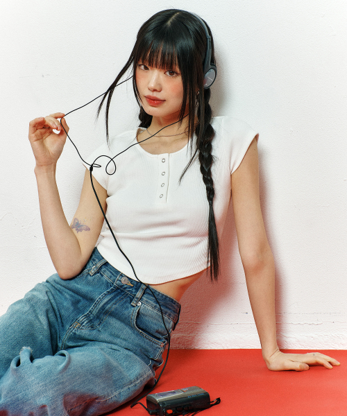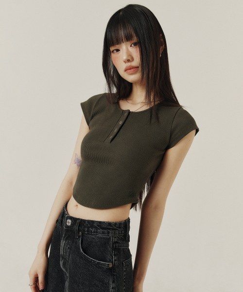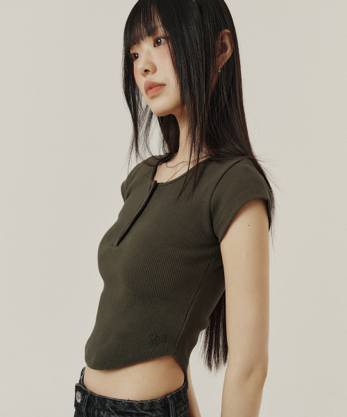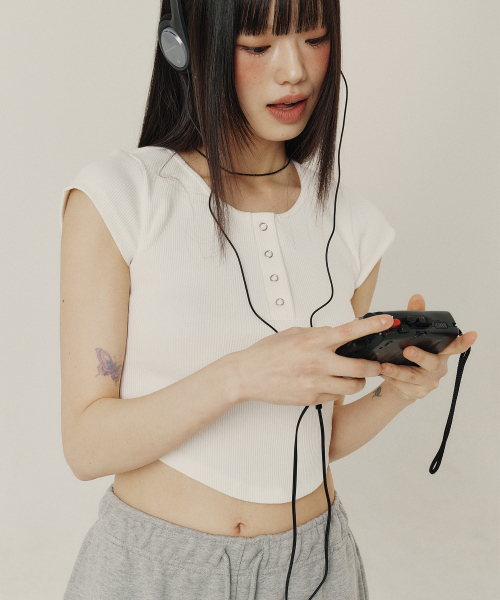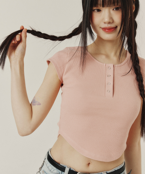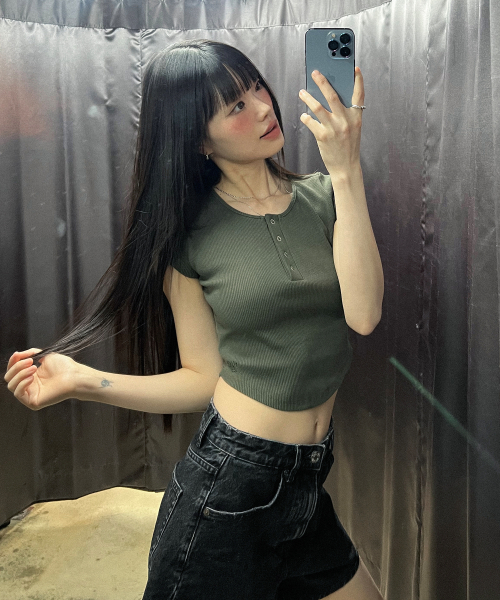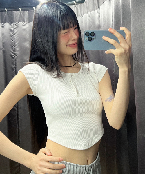 BUTTON SLIM ROUND T-SHIRT_3color