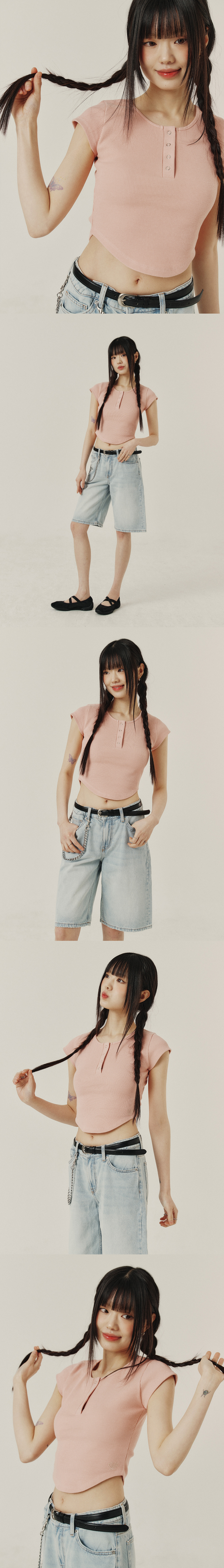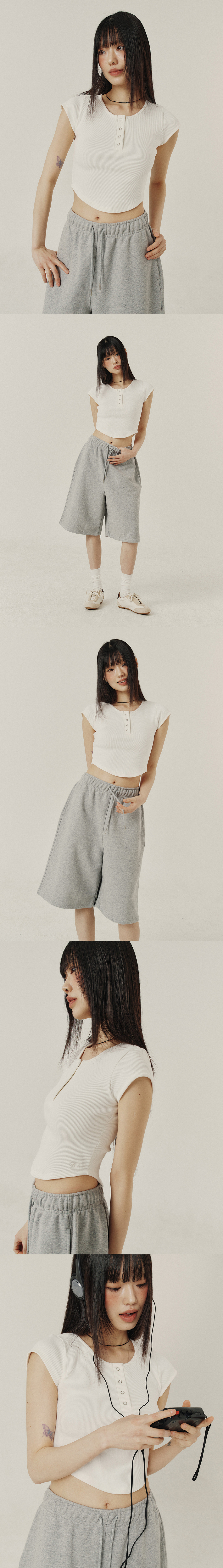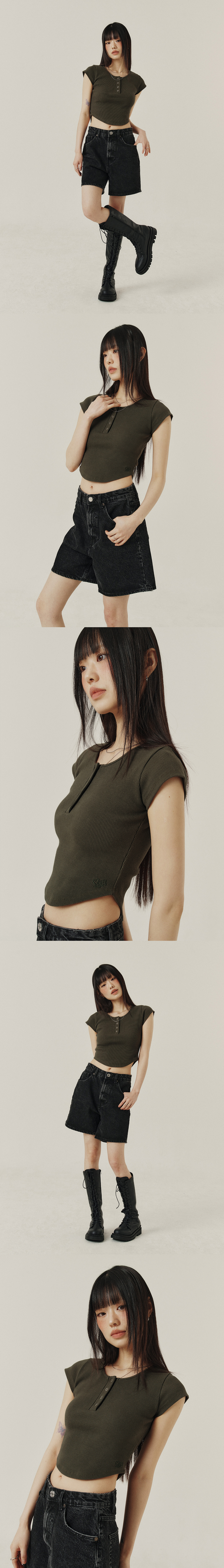 BUTTON SLIM ROUND T-SHIRT_3color