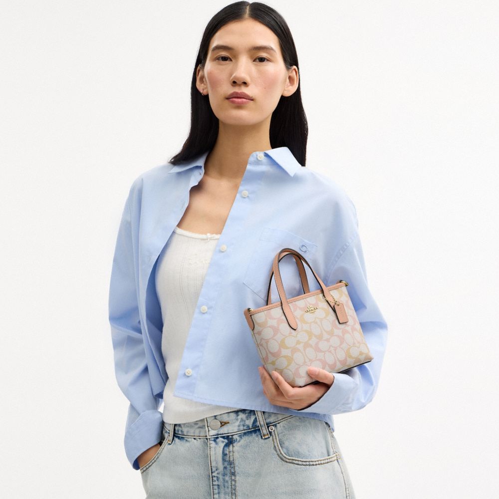 시티 미니 토트 백 인 프리티 시그니처 캔버스 CEK82 IMM8C