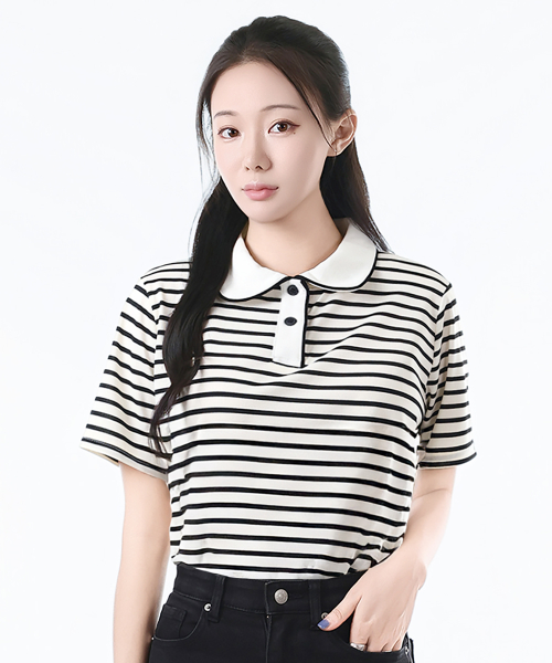 카라 라인 포인트 PK 반팔 티셔츠_블랙