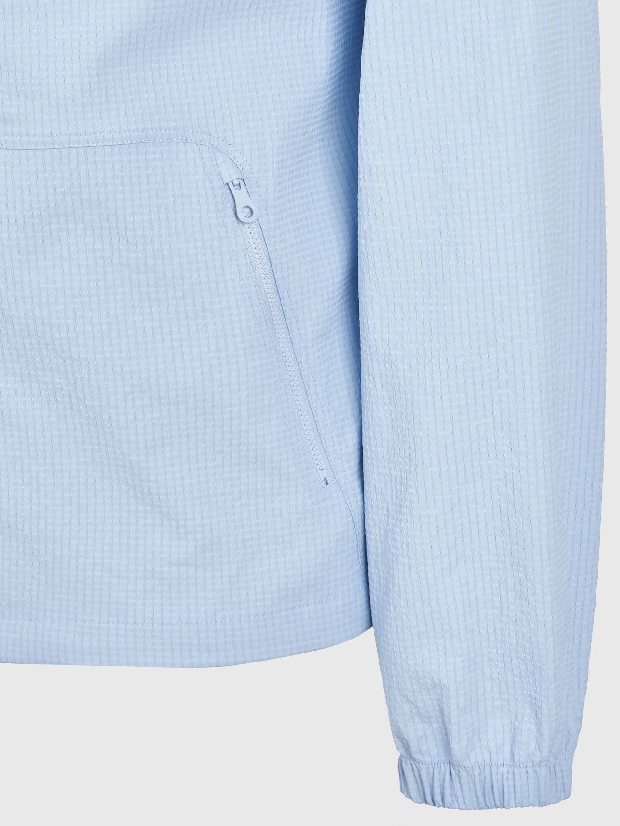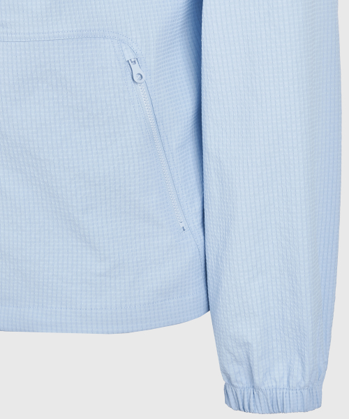 - 시어서커 소재 특유의 요철감 있는 표면을 적용해 쾌적하고 산뜻한 착용감 구현