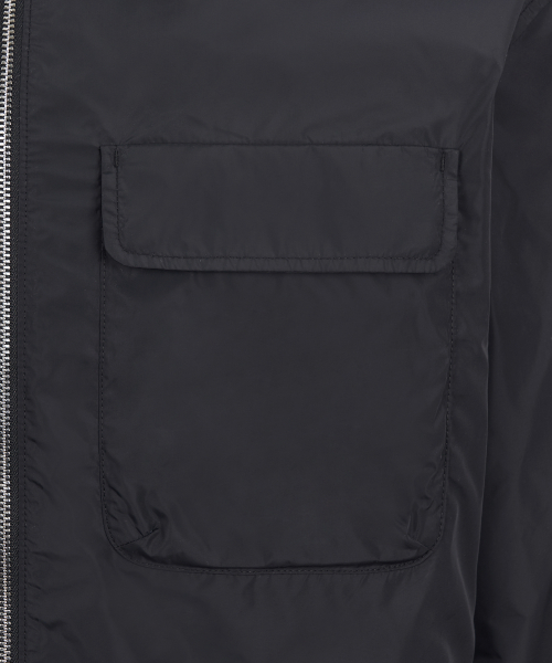 - 깔끔한 실루엣의 카라넥 블루종 자켓으로 단정한 아웃핏 연출