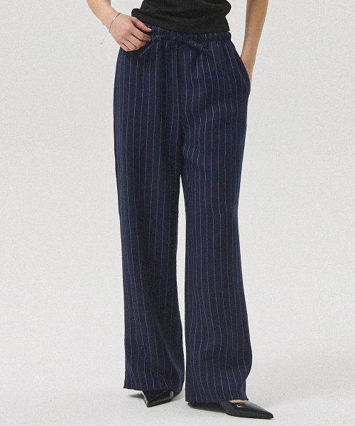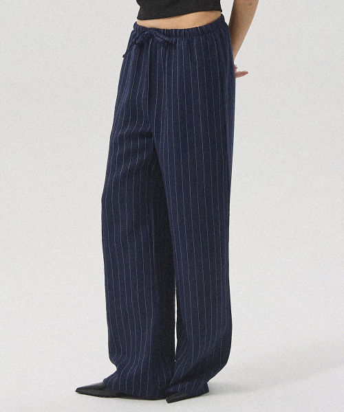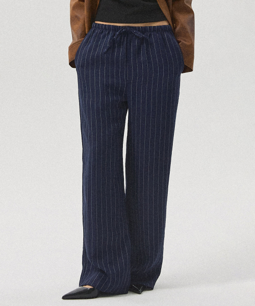Sero Linen-Like Stripe Banding Wide Straight Pants_NAVY