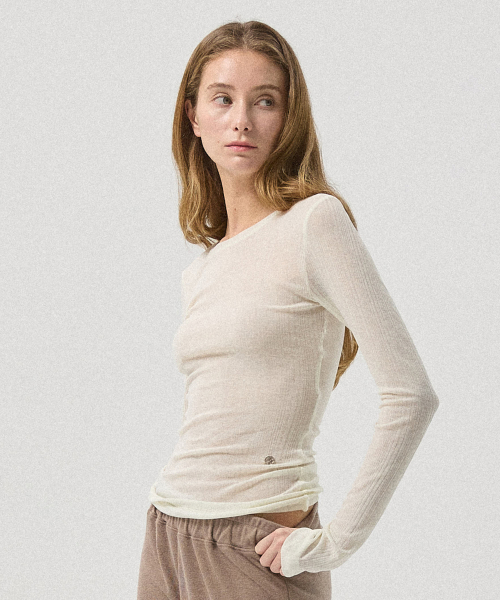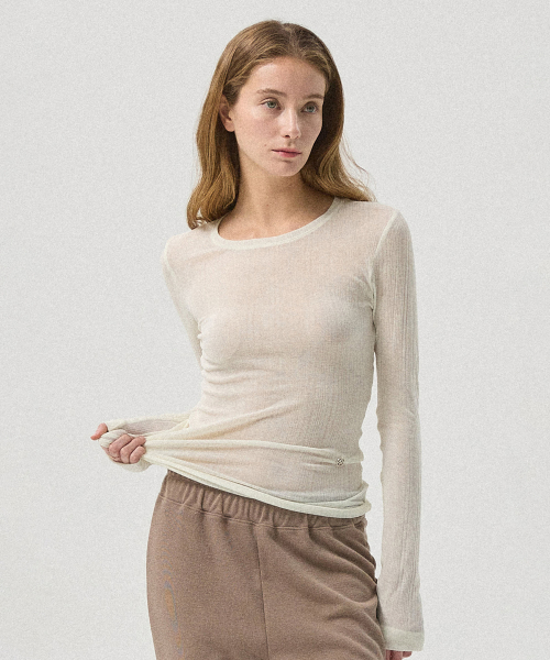 Elia Sheer Rib Long Sleeve Tee_CREAM