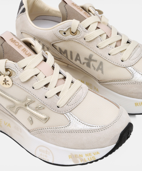 [26SS][MOERUN-D] 베이지 여성 로고패치 소가죽 스니커즈