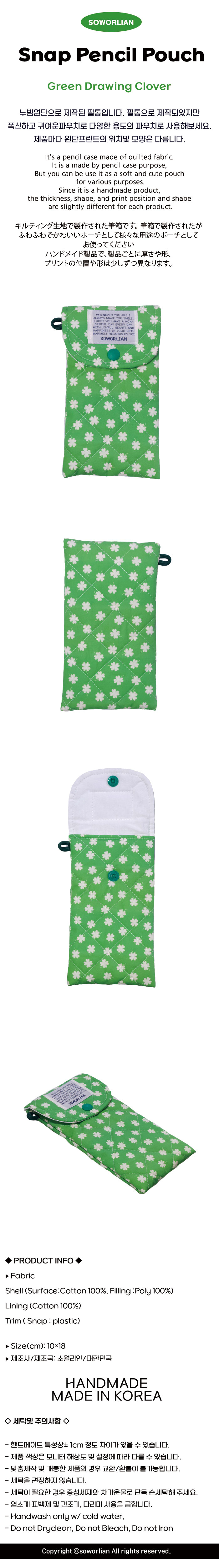 똑딱필통 펜슬파우치_그린 드로잉클로버