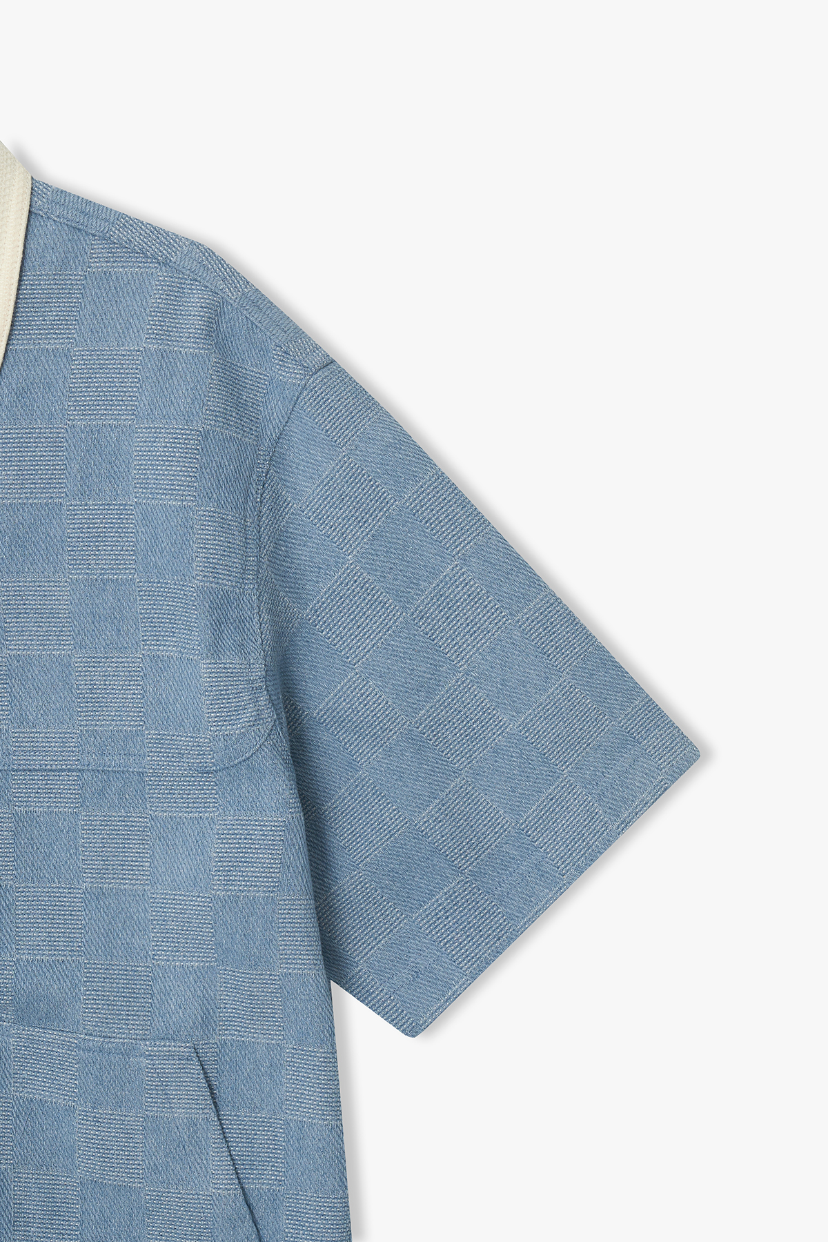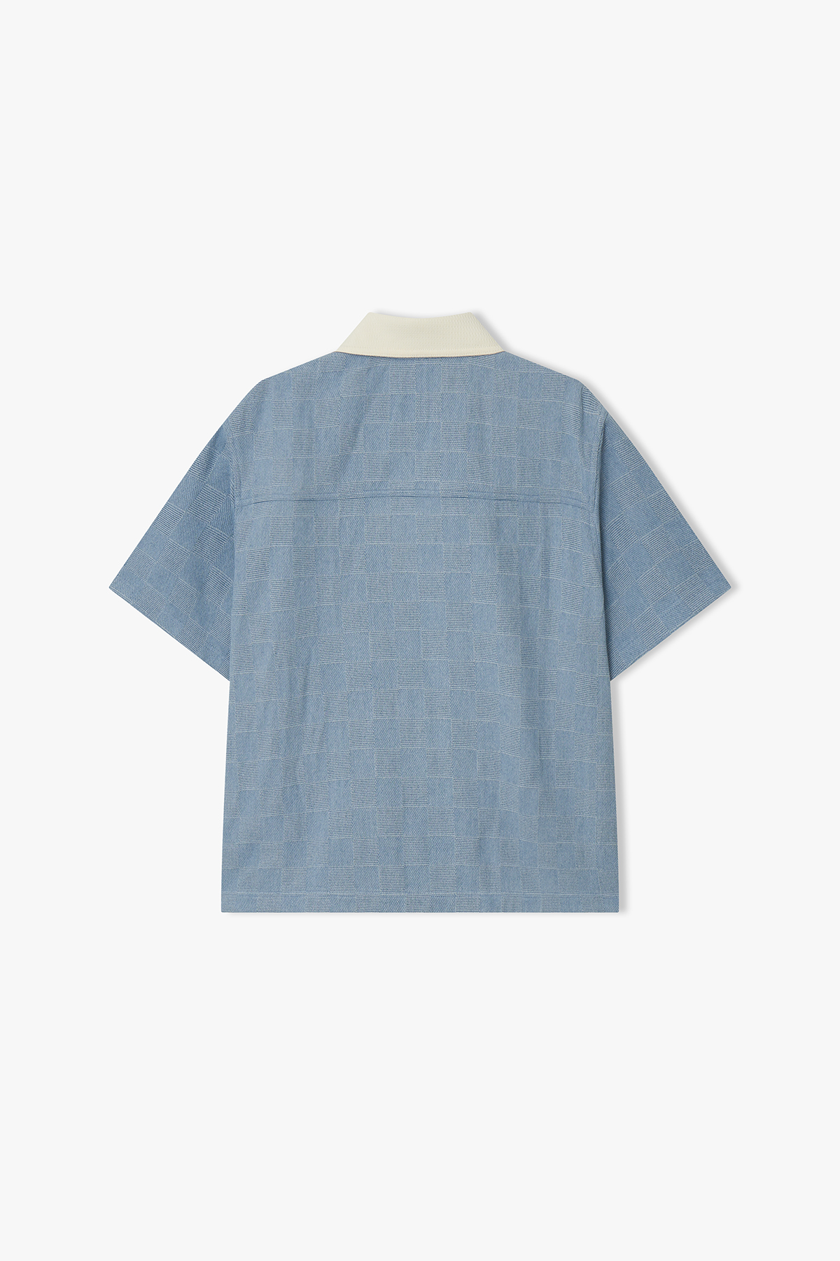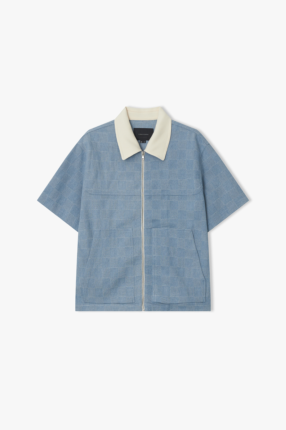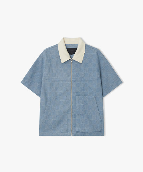 [26SS] LMM32715 라이트블루 컬러리브 체크 데님 하프 셔켓
