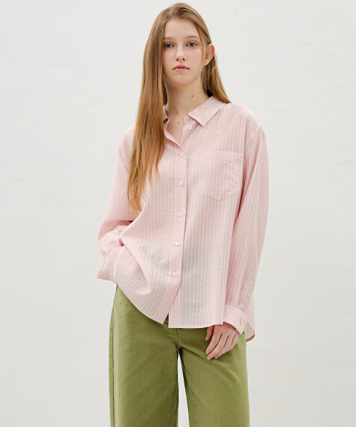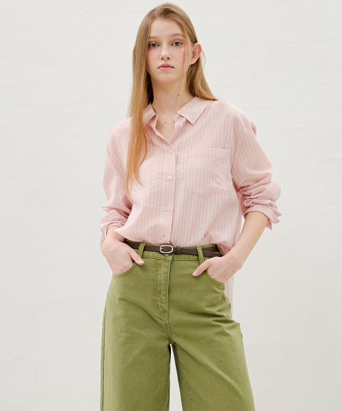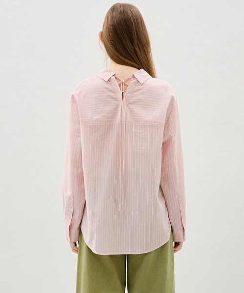 LACE-UP 시어 스트라이프 셔츠 OW6MB3150