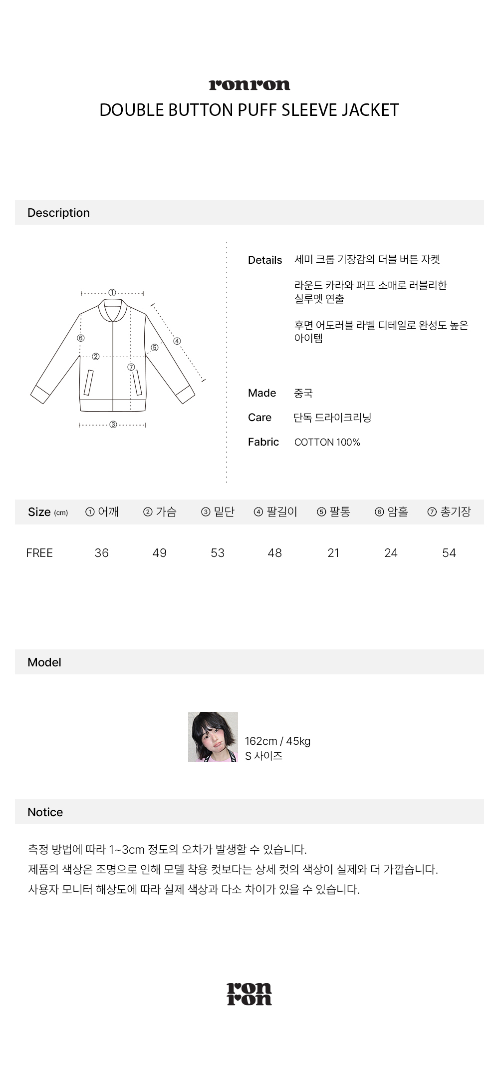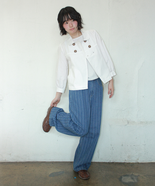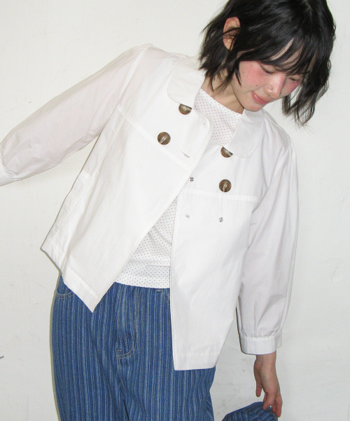 DOUBLE BUTTON PUFF SLEEVE JACKET WHITE