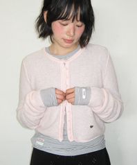 ROLLED EDGE CROP KNIT CARDIGAN PINK