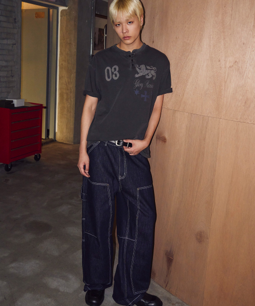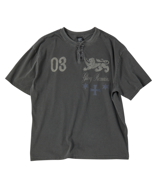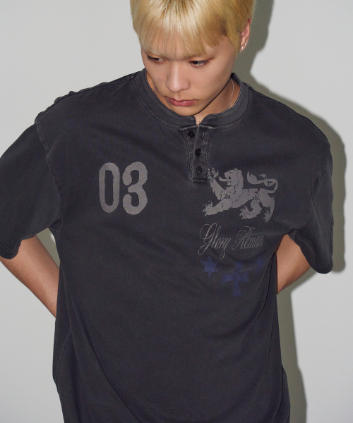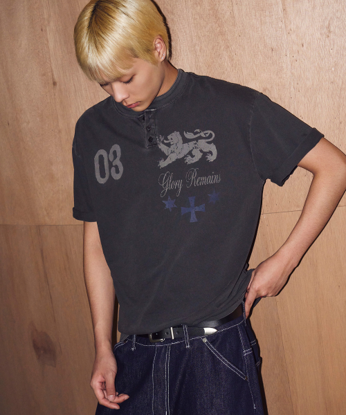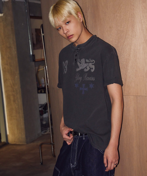 글로리 리메인스 피그먼트 헨리넥 반팔티 블랙 차콜