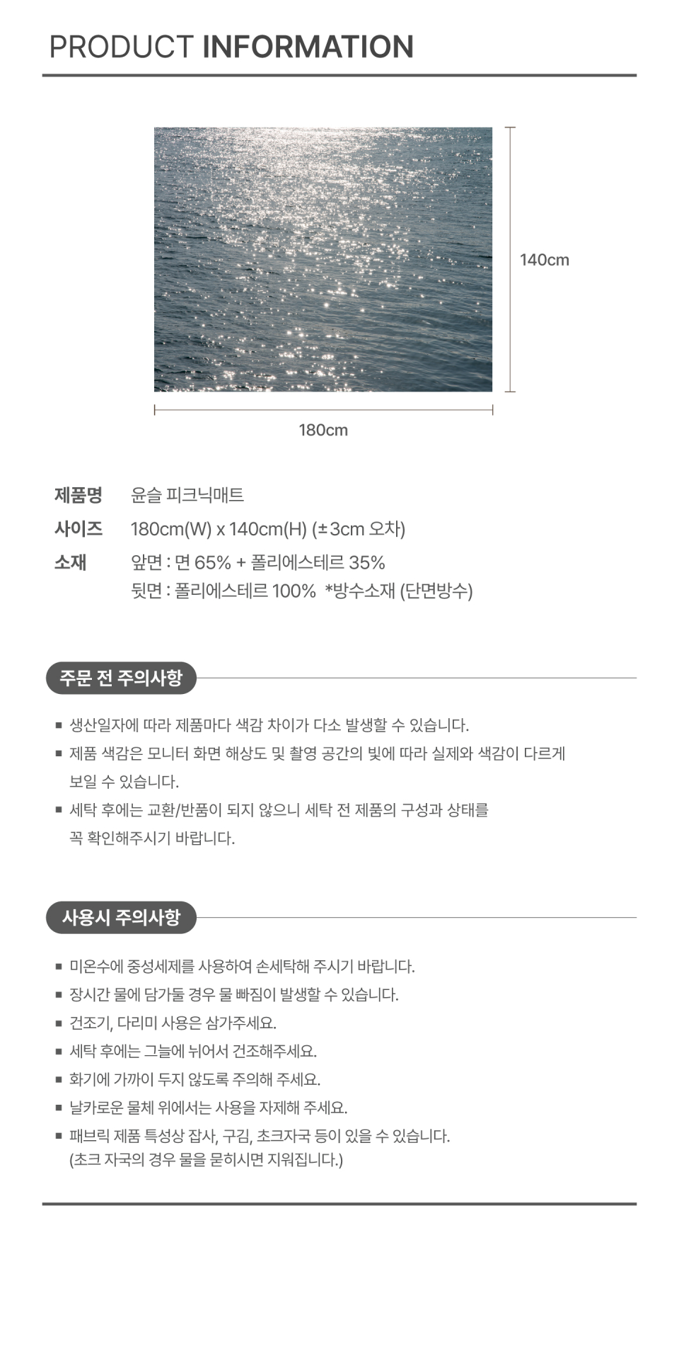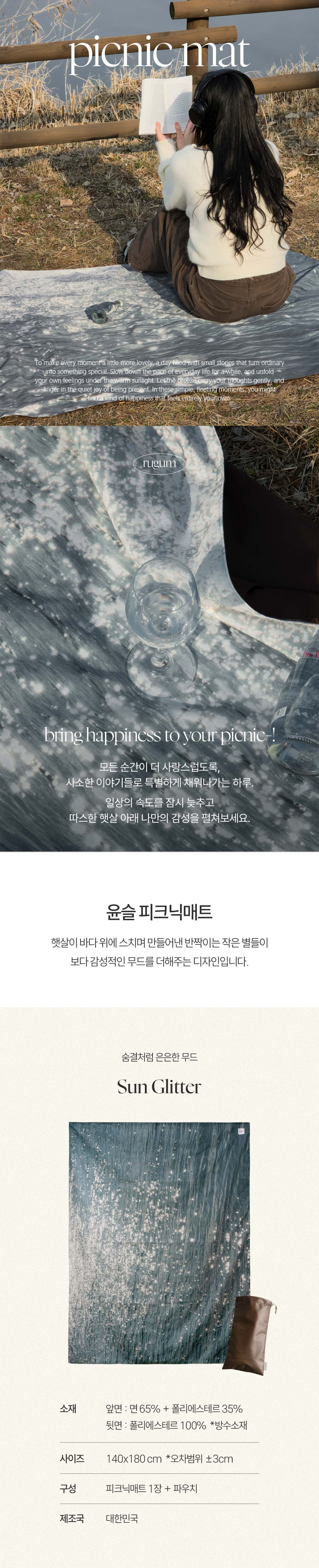 윤슬 피크닉매트 단면방수 휴대용 경량 감성 돗자리