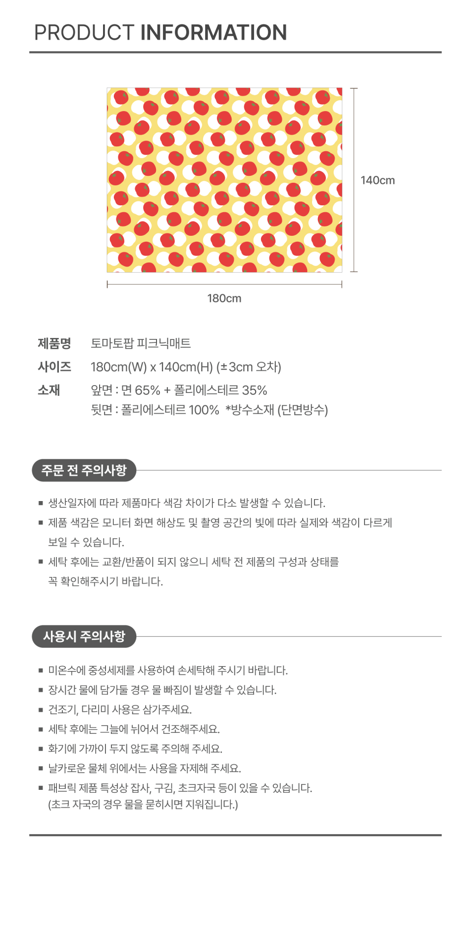 토마토팝 피크닉매트 단면방수 휴대용 경량 감성 돗자리