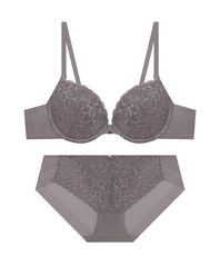 아델라 딥브이 레이스 브라 팬티 세트 - 로지그레이