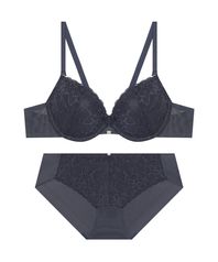 아델라 딥브이 레이스 브라 팬티 세트 - 네이비