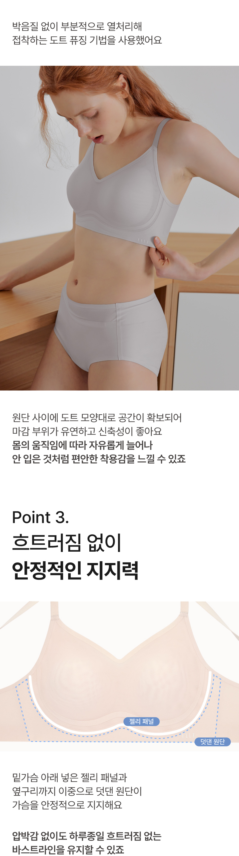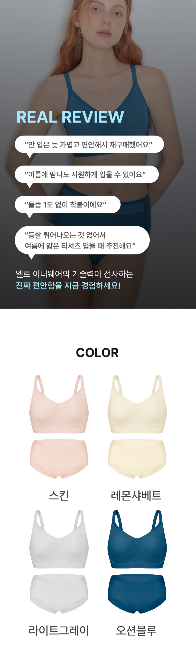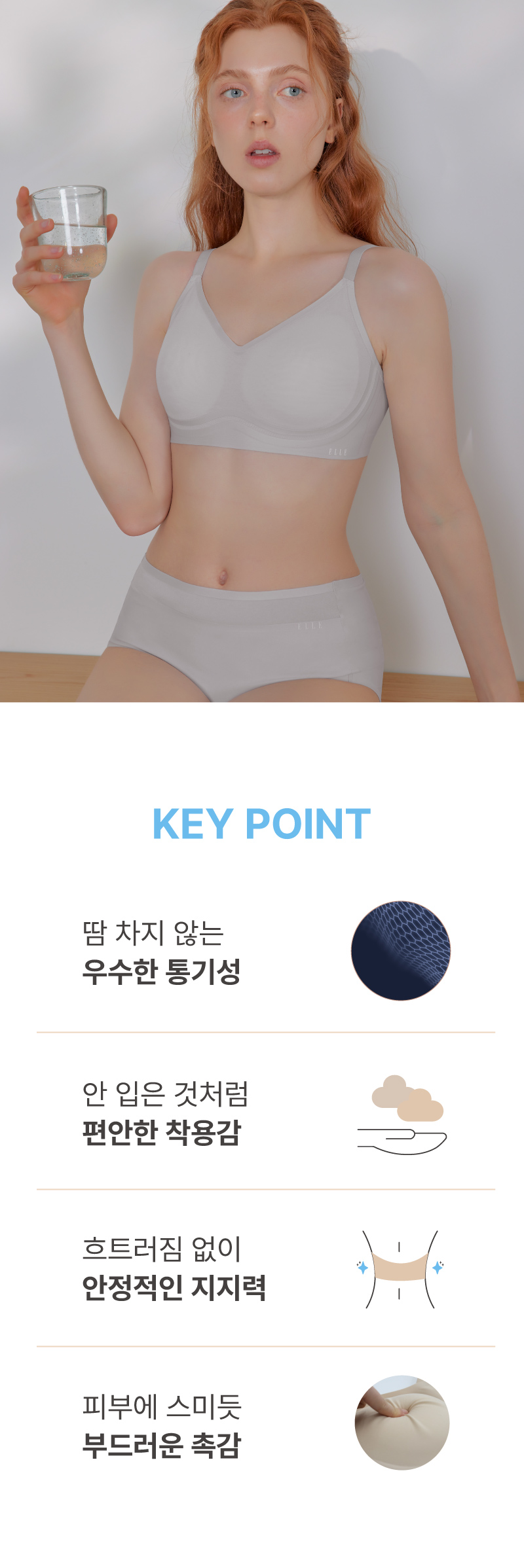 엘르이너웨어는(ELLE INNERWEAR) 프렌치 스타일의 고급스러운 감각과 품격 있는 퀄리티를 지향합니다.