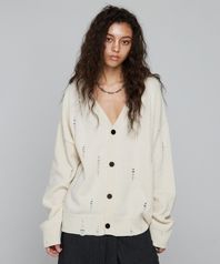 [런웨이] 데미지 후드 니트 가디건_오트밀