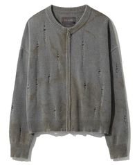 [런웨이] 전통염색 감, 먹 데미지 라운드 니트 집업_그레이