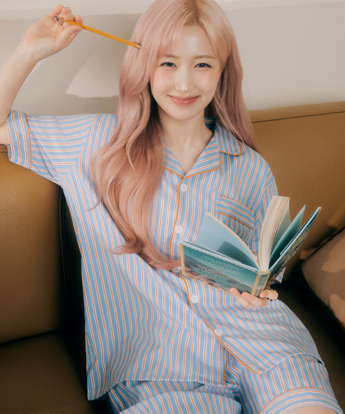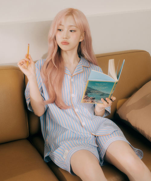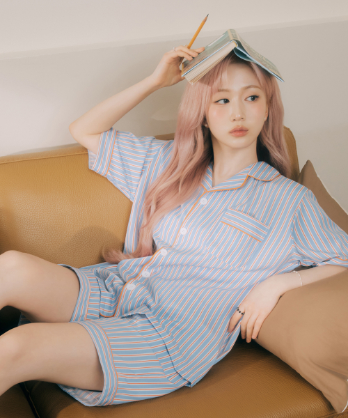 실크핏 모던 반팔 반바지 커플 잠옷 세트