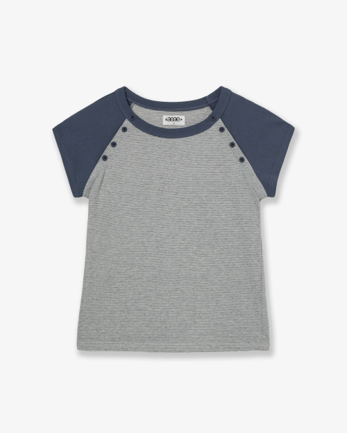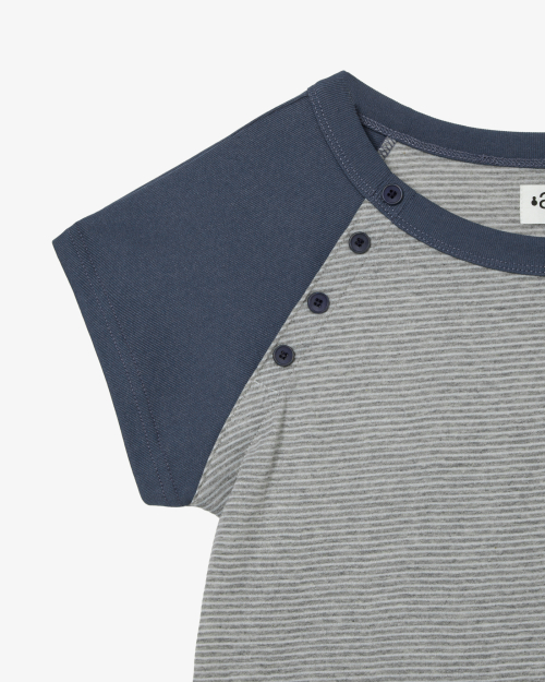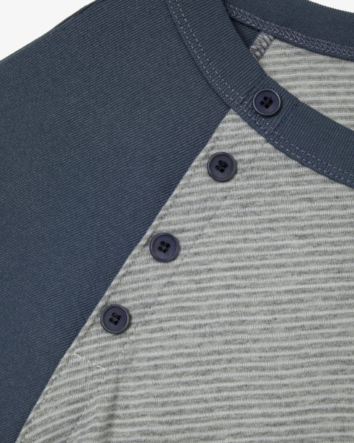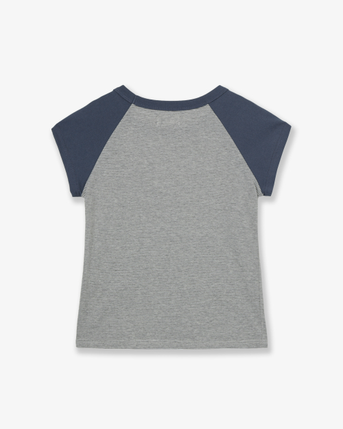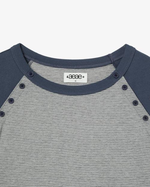 STRIPE BUTTON RAGLAN TEE [GREY]