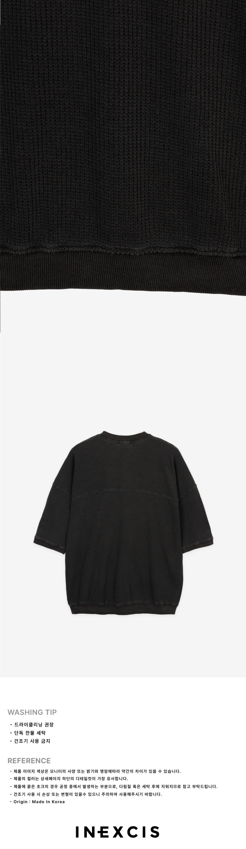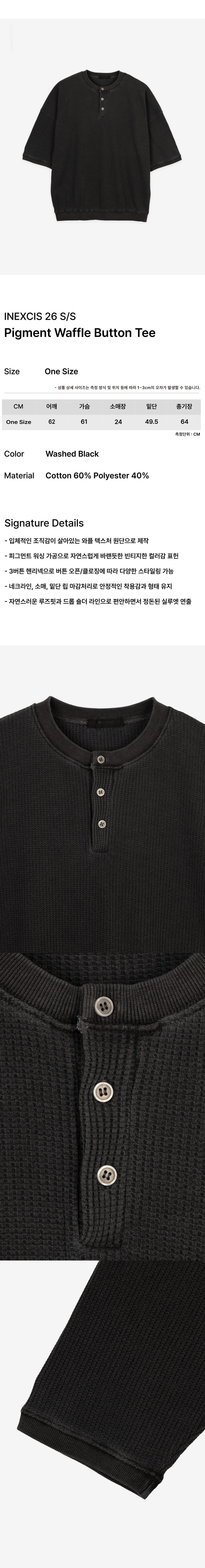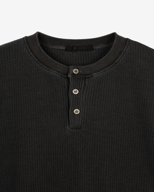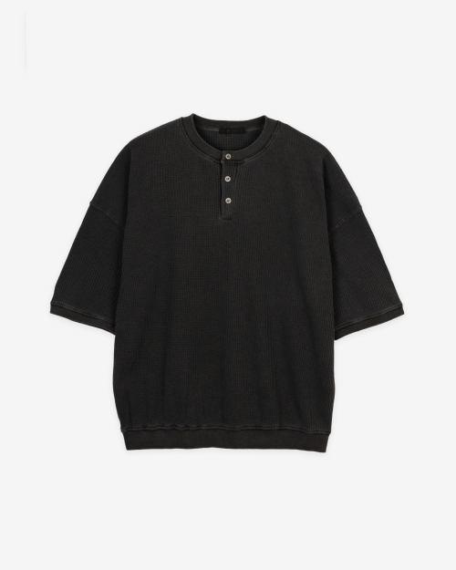 피그먼트 와플 버튼 티셔츠 (Washed Black)