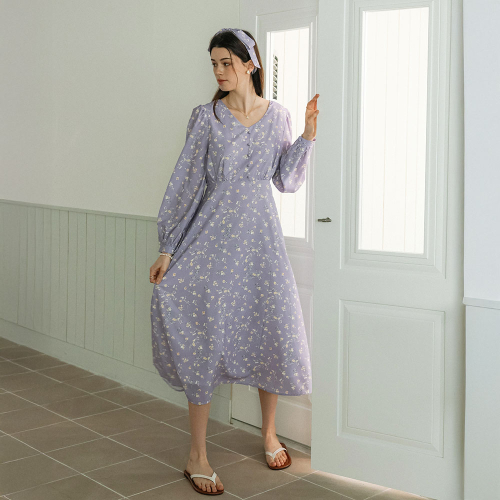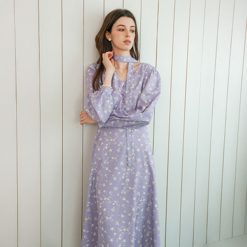 DD_Floral tie neck dress_PURPLE