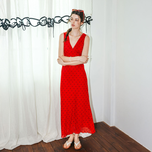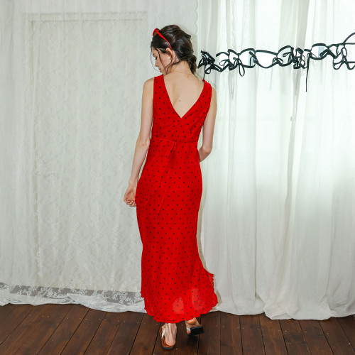 DD_Polka dot sleeveless long dress_RED