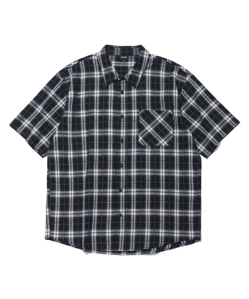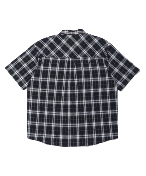 원 포켓 오버 체크 반팔 셔츠 LQ2YU342_BLACK