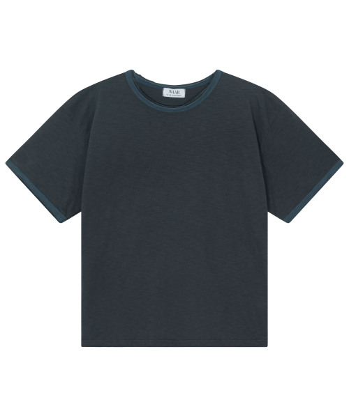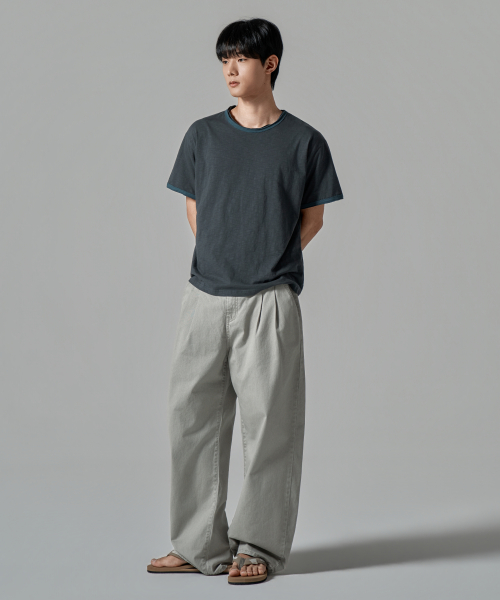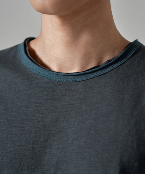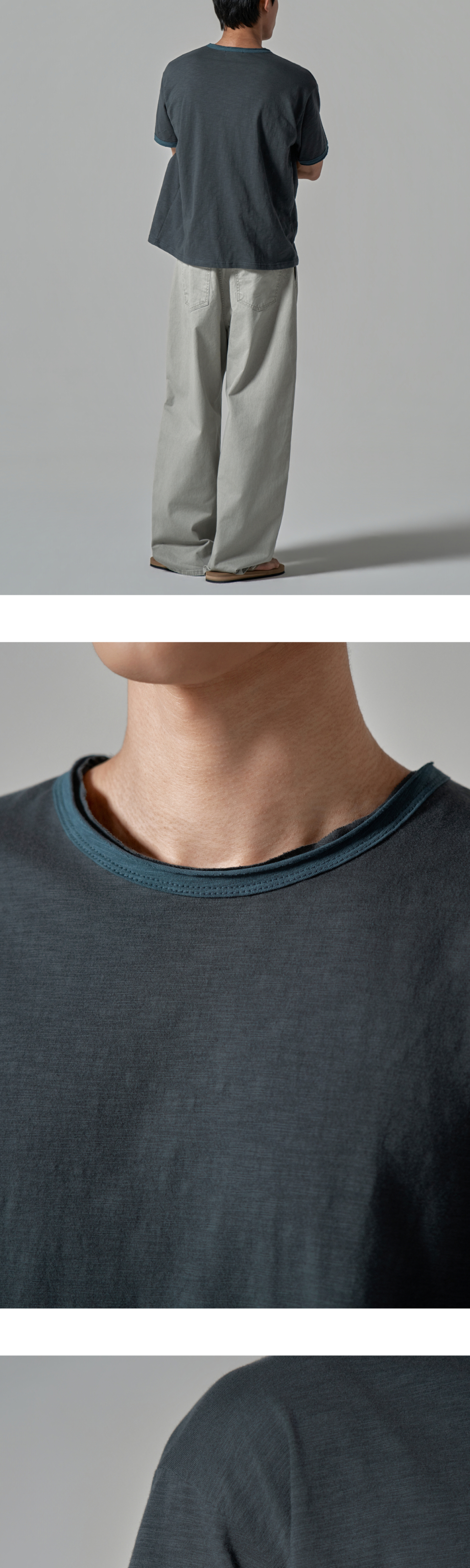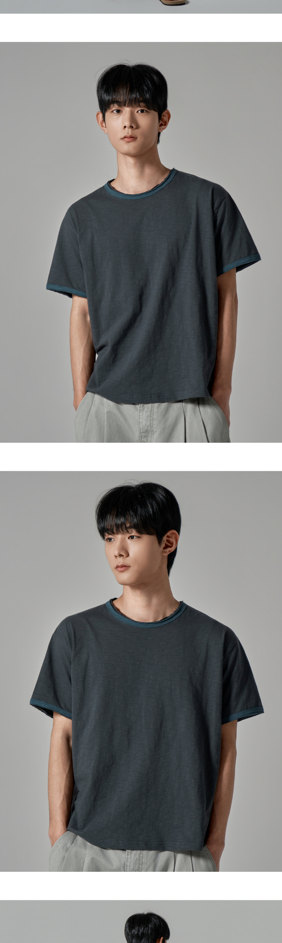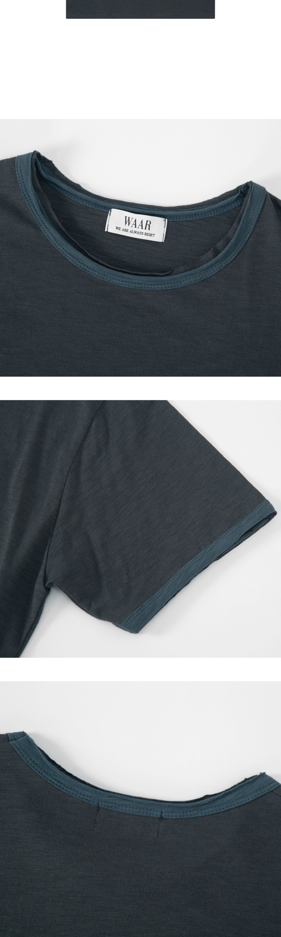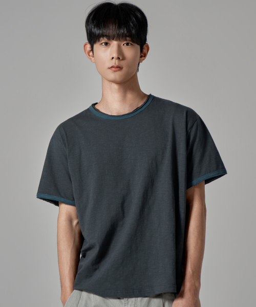 M1086 로우컷 배색 라운드 반팔 티셔츠_차콜