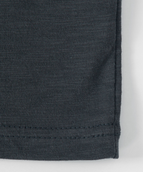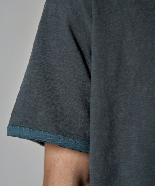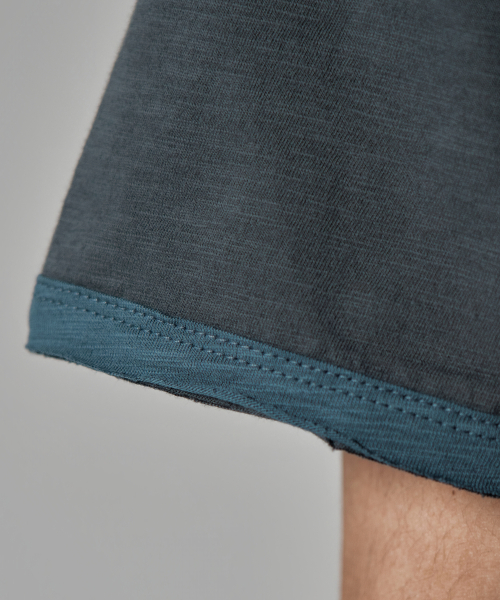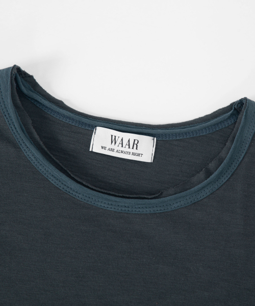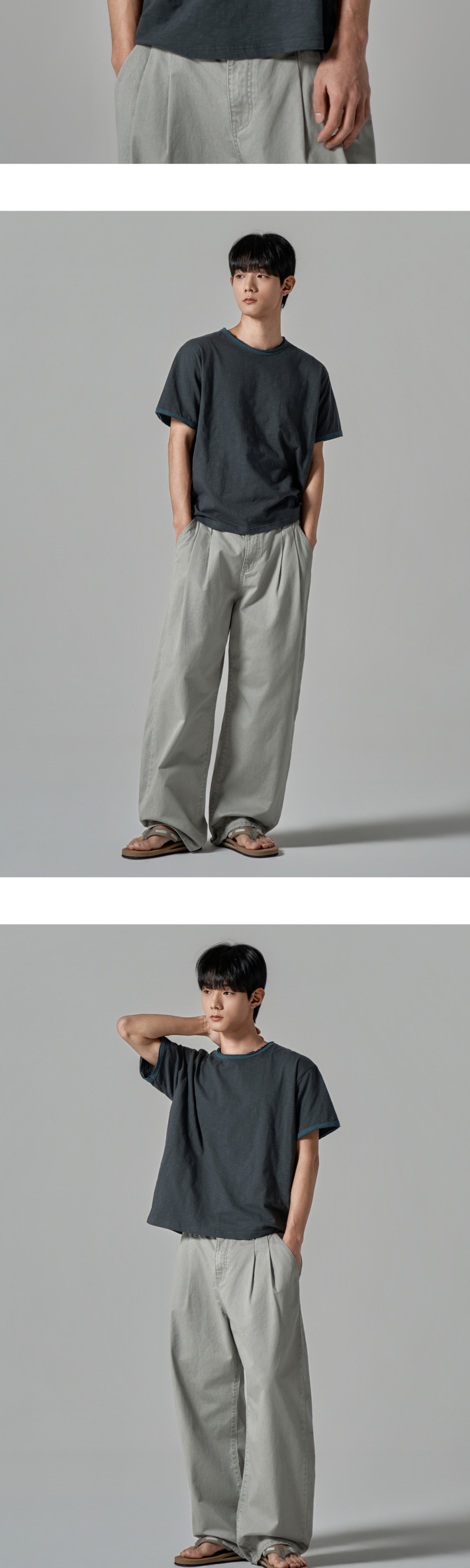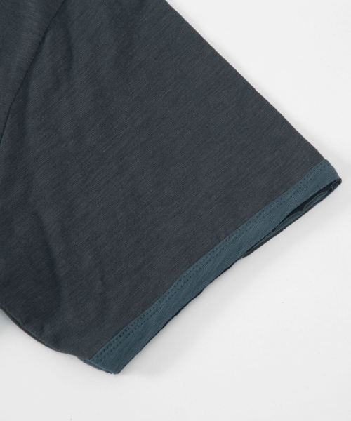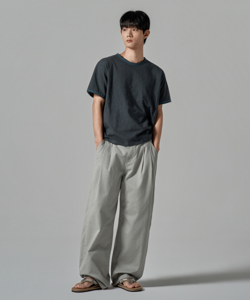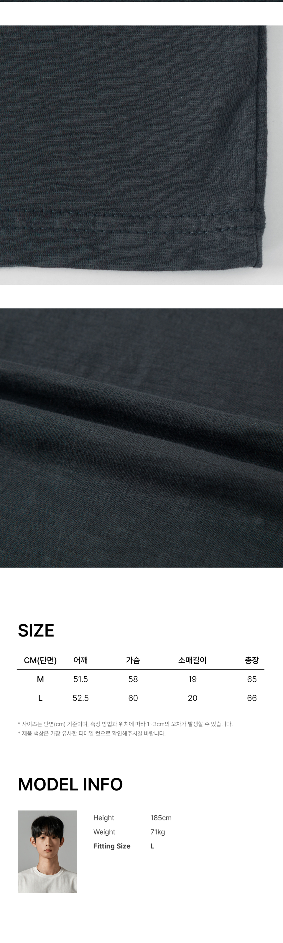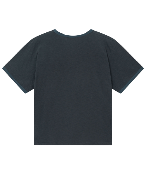 M1086 로우컷 배색 라운드 반팔 티셔츠_차콜