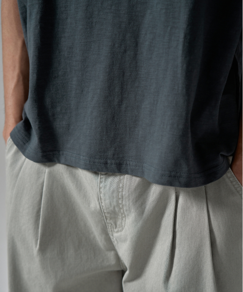 M1087 컷 오프 라운드 반팔 티셔츠_블랙