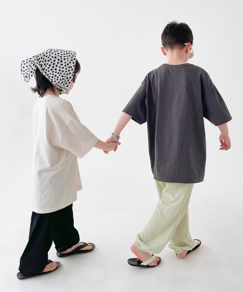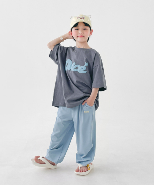 KIDS TAG STRAIGHT PANTS - M/GREY