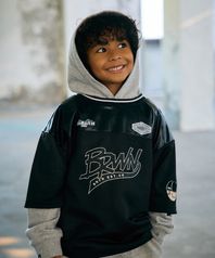 KIDS BRWN LAYERD JERSEY HOODIE - BLACK