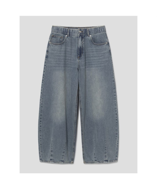 여유 있는 벌룬핏 데님 팬츠입니다. 허리에 밴딩이 있어 편안하게 착용하기 좋으며, 좁게 모아지는 밑단이 신발 위에 자연스럽게 쌓이면서 기장을 보완해줍니다. 빈티지한 워싱 컬러감으로 캐주얼한 착장에 활용도 높은 데일리 아이템입니다.