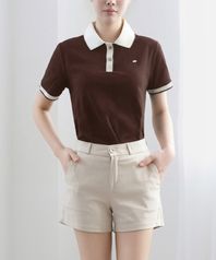 카라 라인 포인트 PK 반팔 티셔츠_브라운