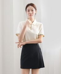 카라 라인 포인트 PK 반팔 티셔츠_베이지라인카라