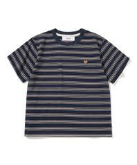 (UNISEX) 스트라이프 레더 하트 티셔츠 NAVY